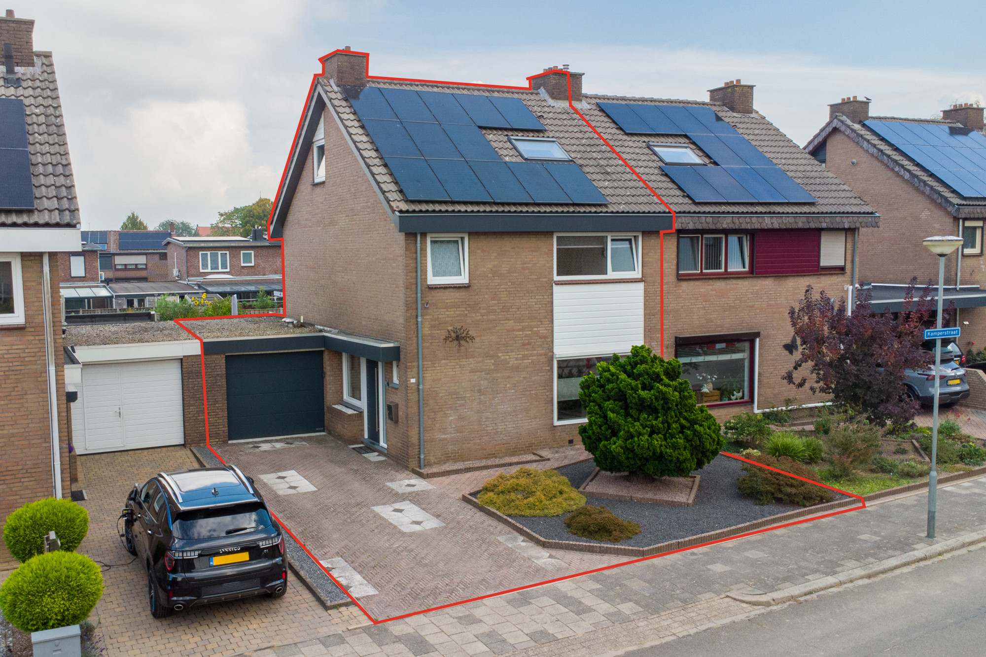 Wij bieden u aan: 'Een ruime goed onderhouden twee onder een kap woning met garage, terrasoverkapping en ruime goed verzorgde achtertuin, gelegen in gewilde woonwijk nabij winkelcentrum Op de Kamp.