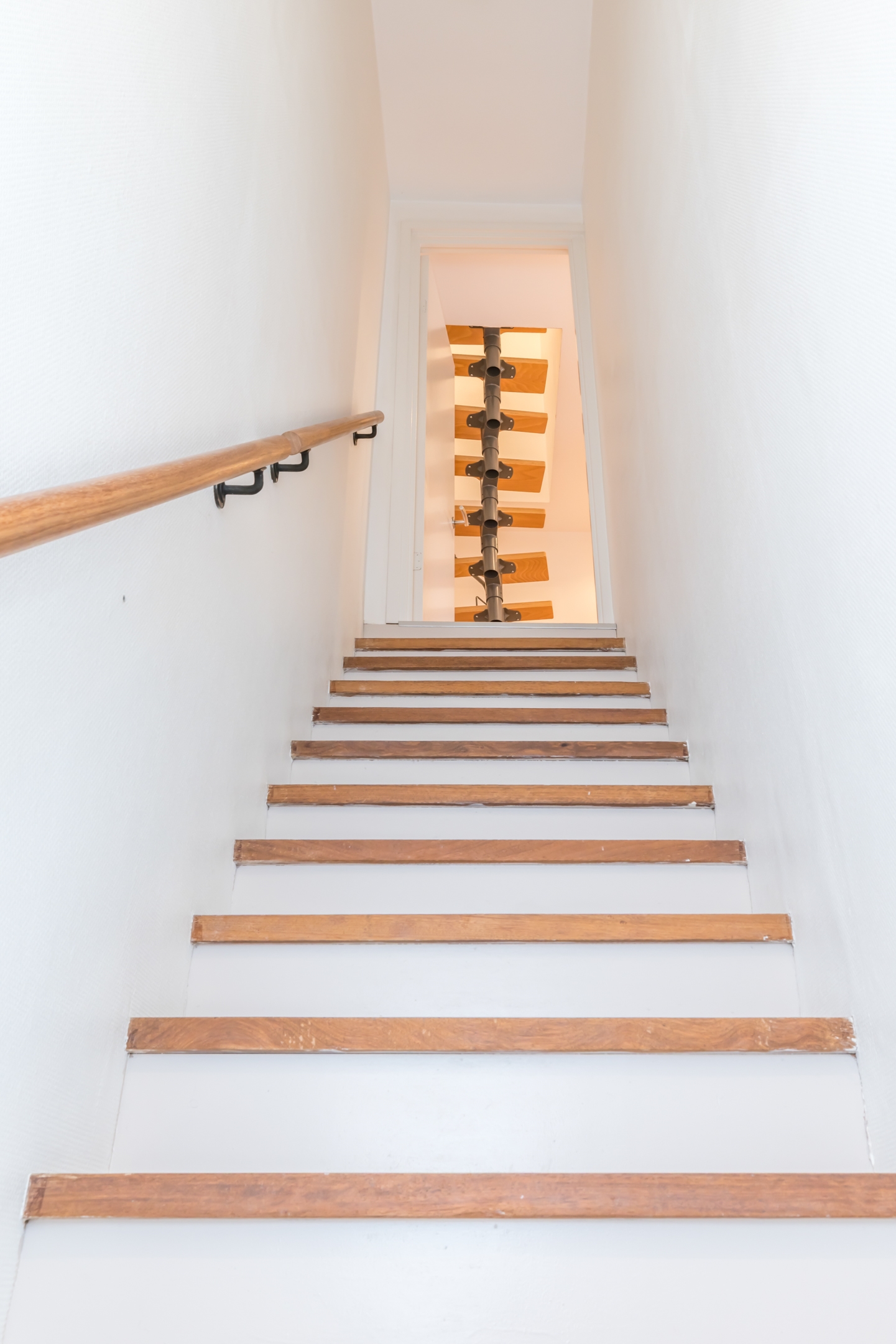 Keuken met apparatuur, vaste trap naar de zolder met daardoor 3 slaapkamers.