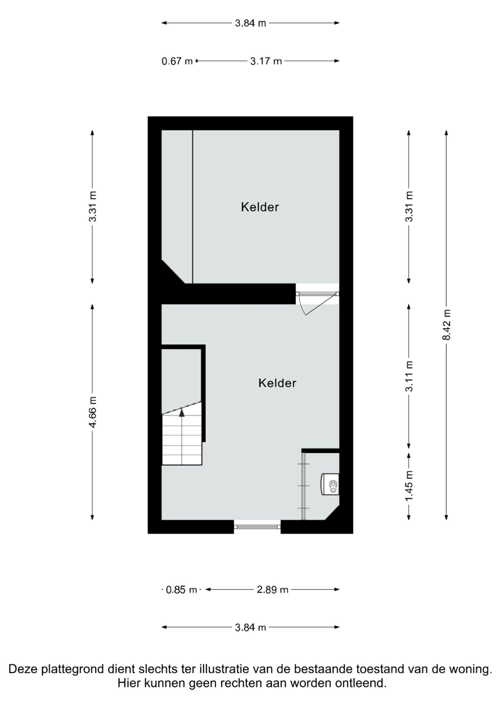 Verdeeld in twee ruimtes. Hier bevindt zich de wasmachine aansluiting en CV ketel.