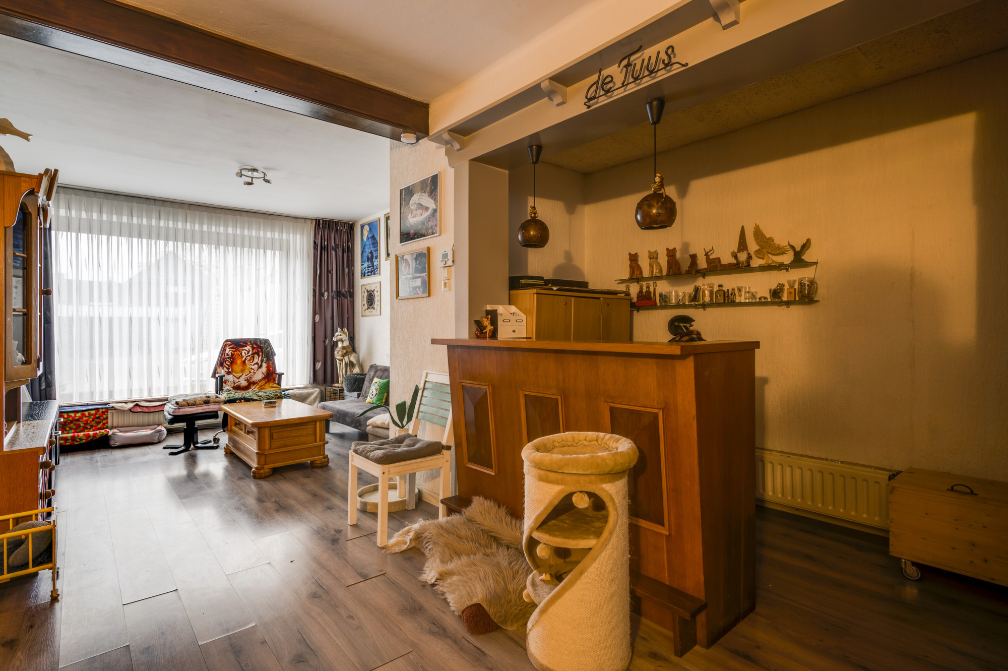 De woning heeft veel leefruimte op de begane grond met verrassende elementen, zoals een gezellige bar in de woonkamer en een gezellige open haard, een diepe achtertuin met achterom (ook toegankelijk voor auto's) en diverse mogelijkheden om de garage bij de woning te betrekken. De woning zelf is voorzien van dakisolatie (na geïsoleerd) en het platte dak is vernieuwd in 2023. Deels voorzien van kunststof kozijnen en deels houten kozijnen met dubbel glas (HR). Enige modernisering is nodig, waardoor het ideaal is om er een fraai eigen woonpaleis van te maken, centraal in het dorp!