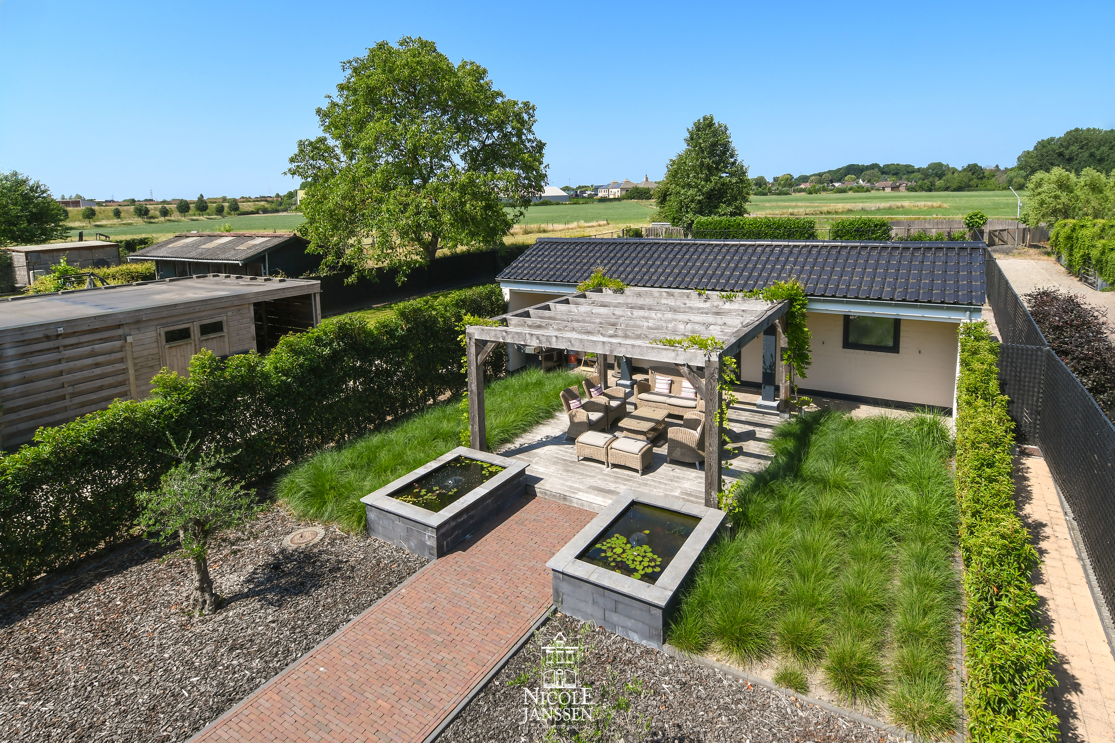 - Ruim buitenterras met houten pergola