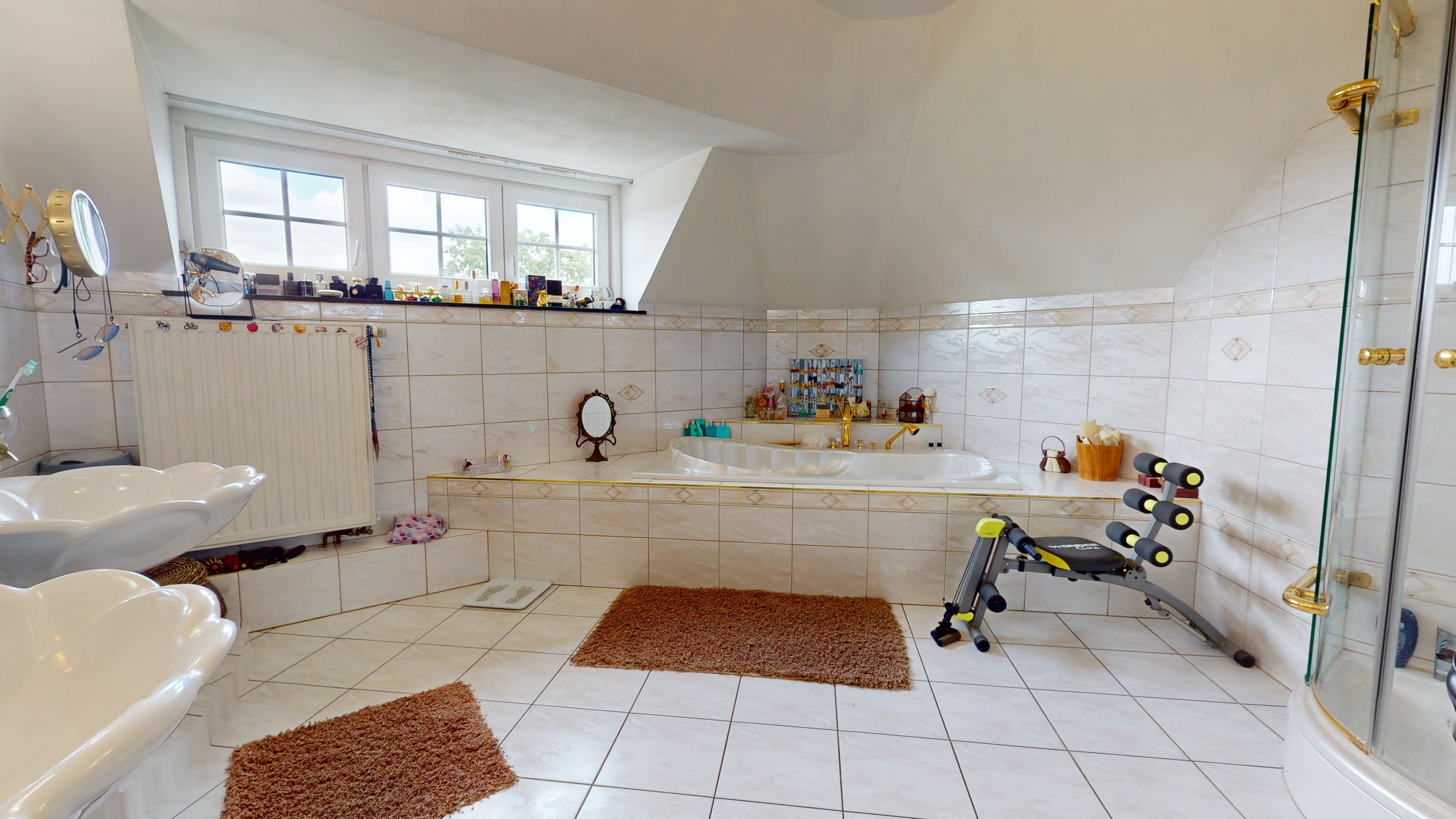 De eerste verdieping telt drie slaapkamers, twee badkamers, een apart toilet en een zolderberging.