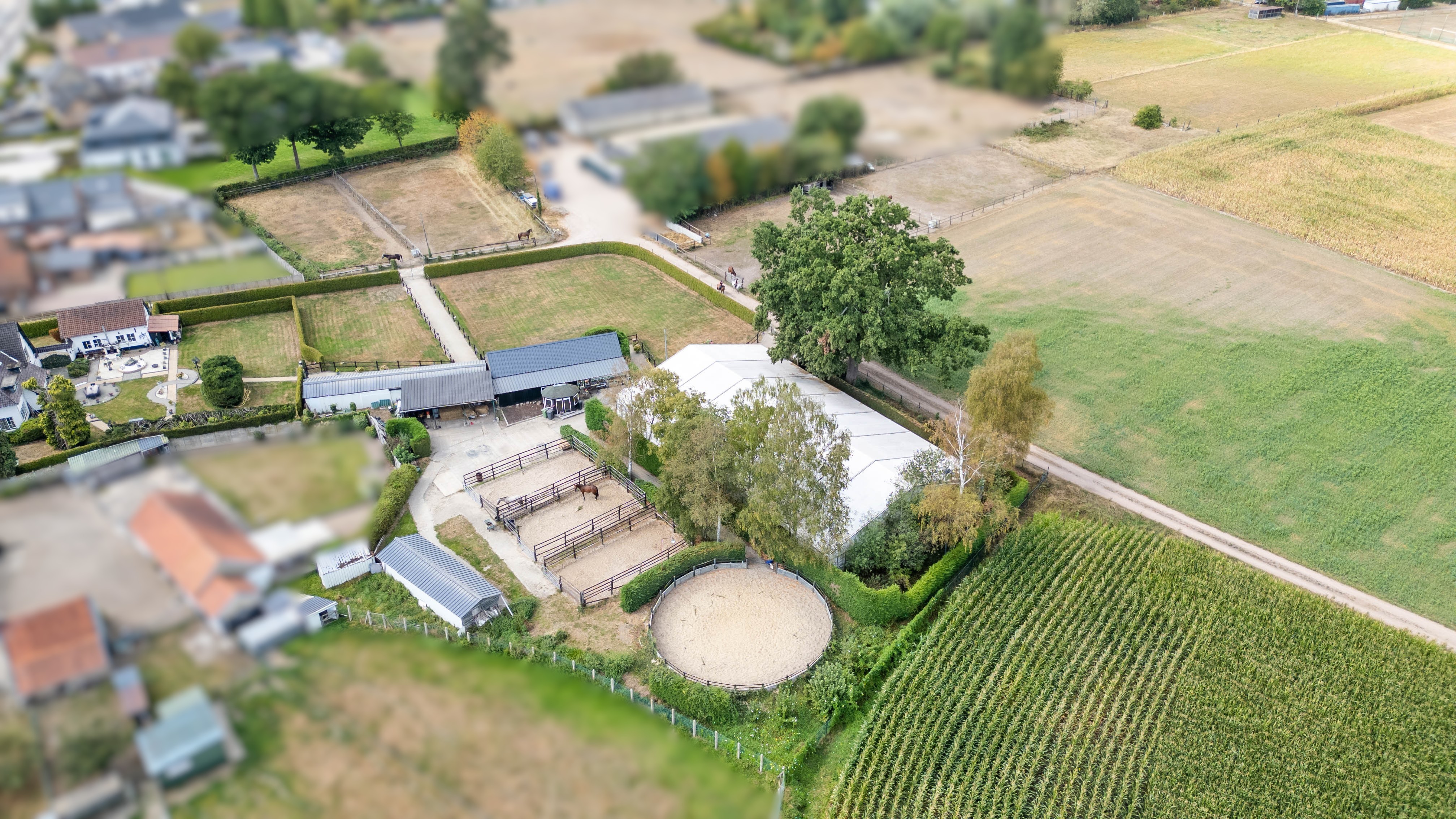 Wil u hobbymatig of professioneel paarden houden en trainen: deze eigendom combineert een ruime woonst met een volledig uitgeruste paardeninfrastructuur waar u alles bij de hand hebt !