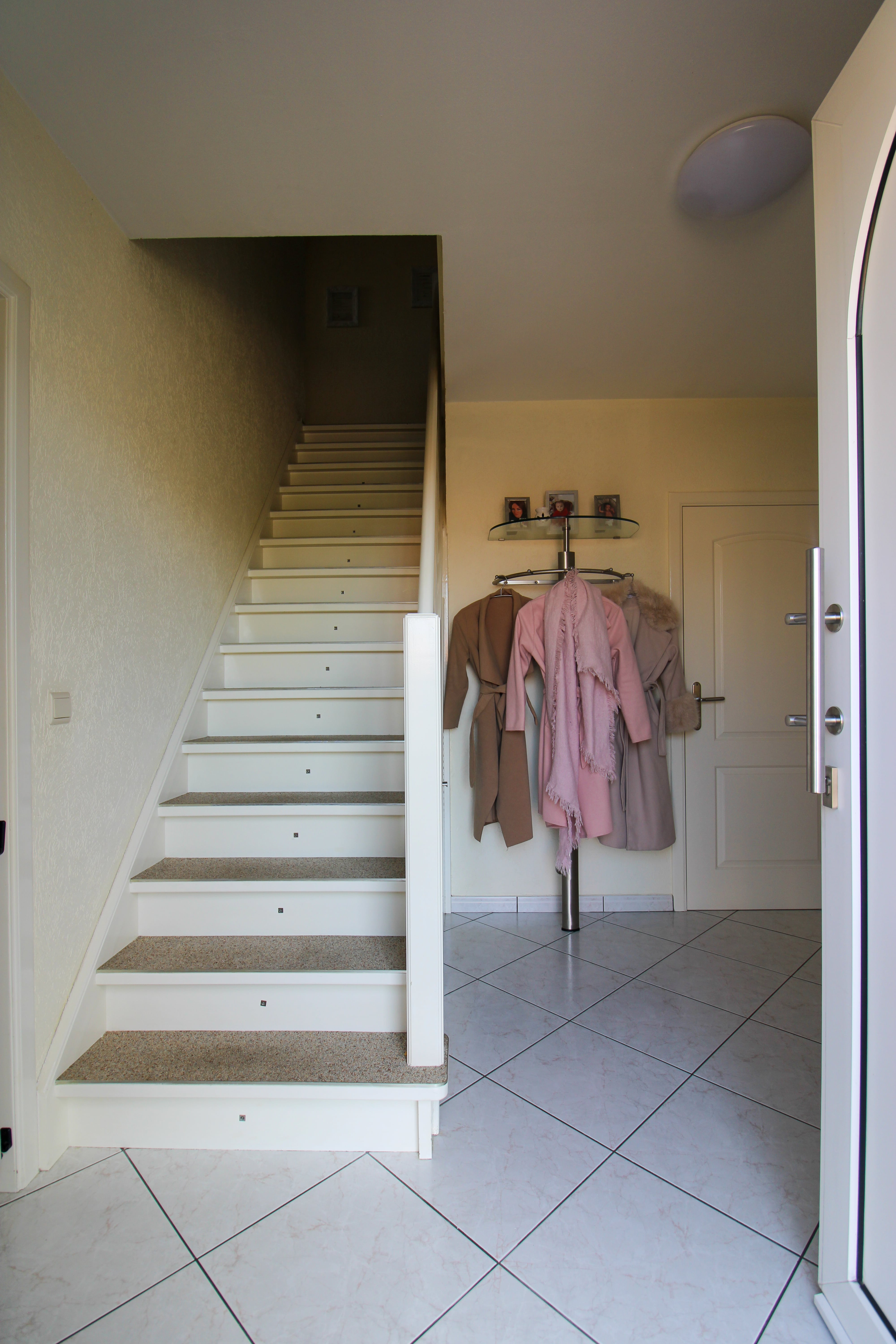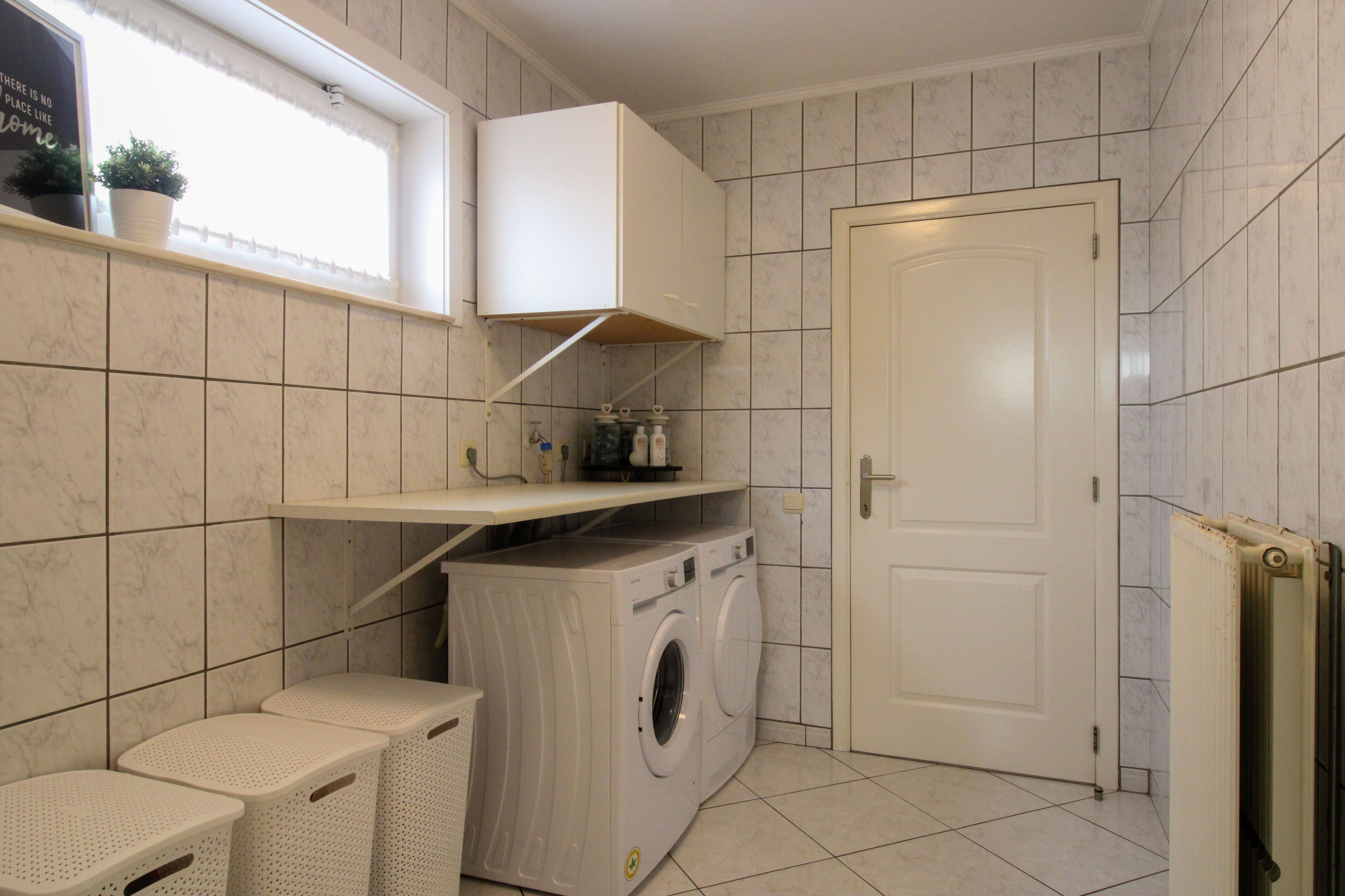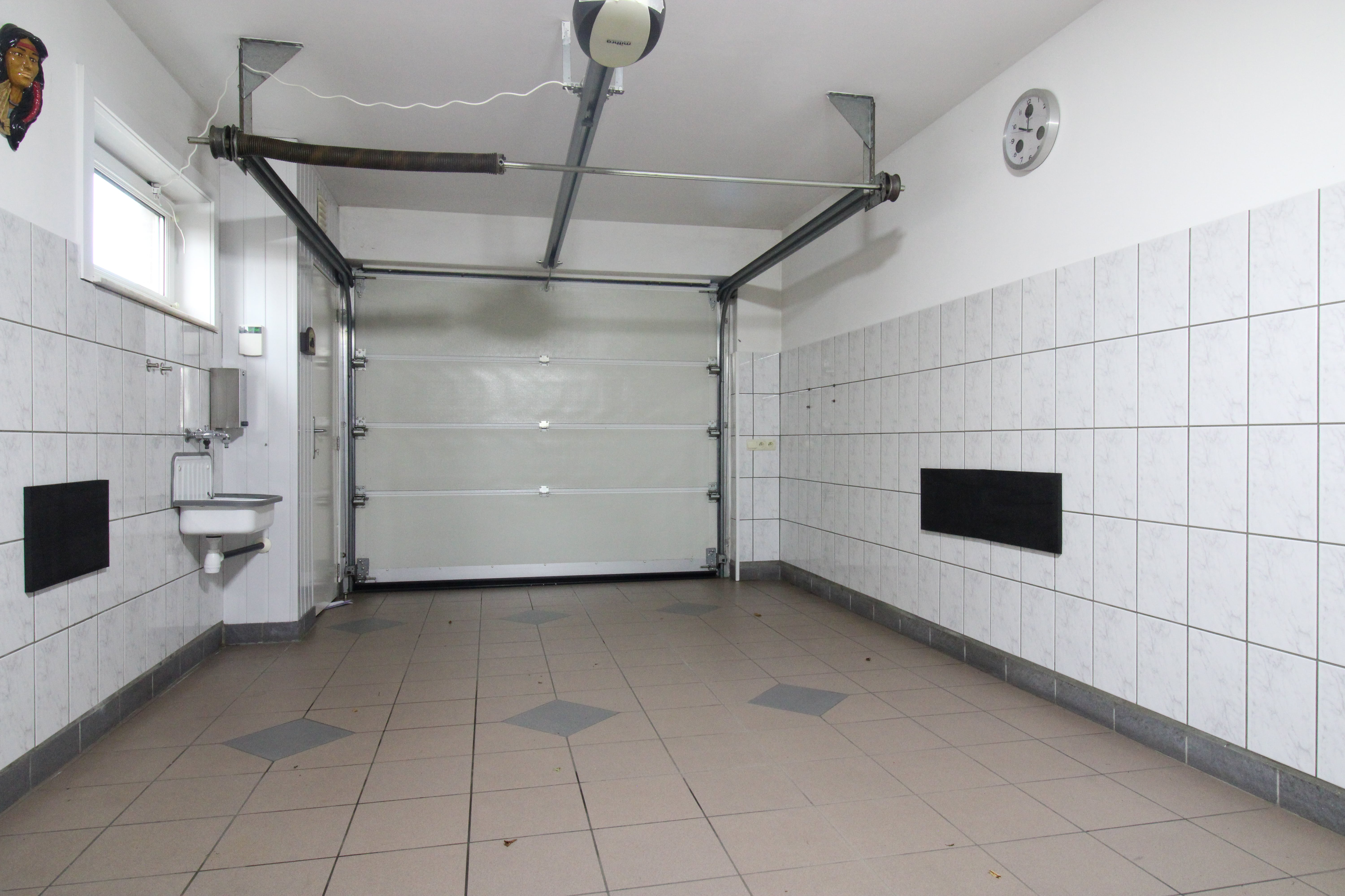 Verder bevinden zich op het gelijkvloers nog een ruime berging, badkamer met toilet, douchecabine en lavabo én een inpandige garage met sectionaal poort.