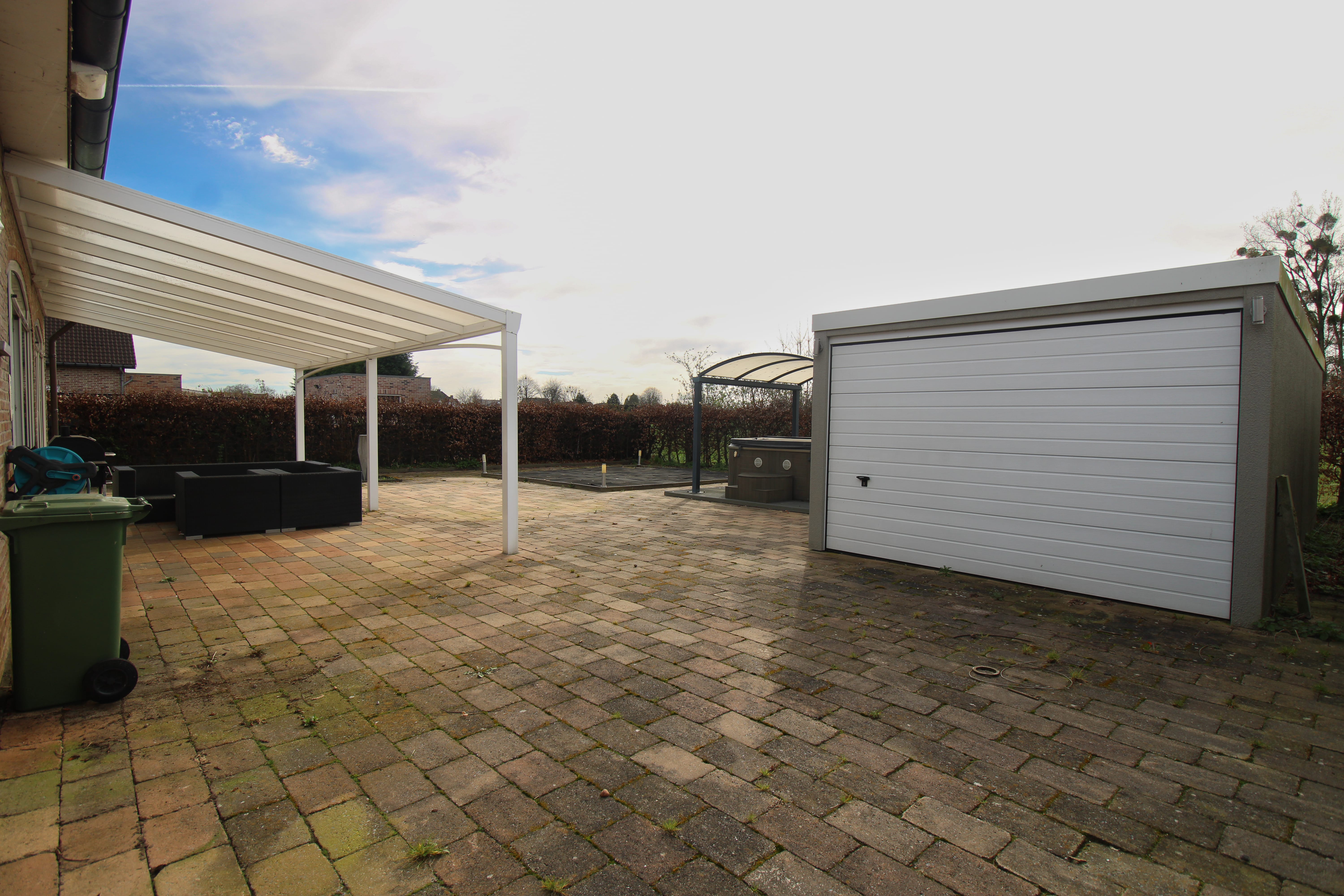 Het perceel is volledig omheind en heeft aan de achterzijde een veranda met aansluitend nog een overkapping én extra vrijstaande garage.