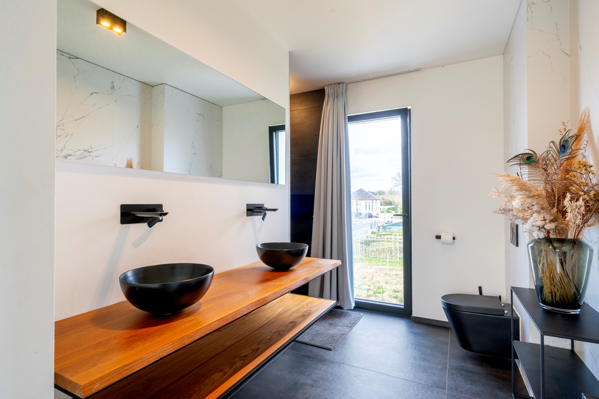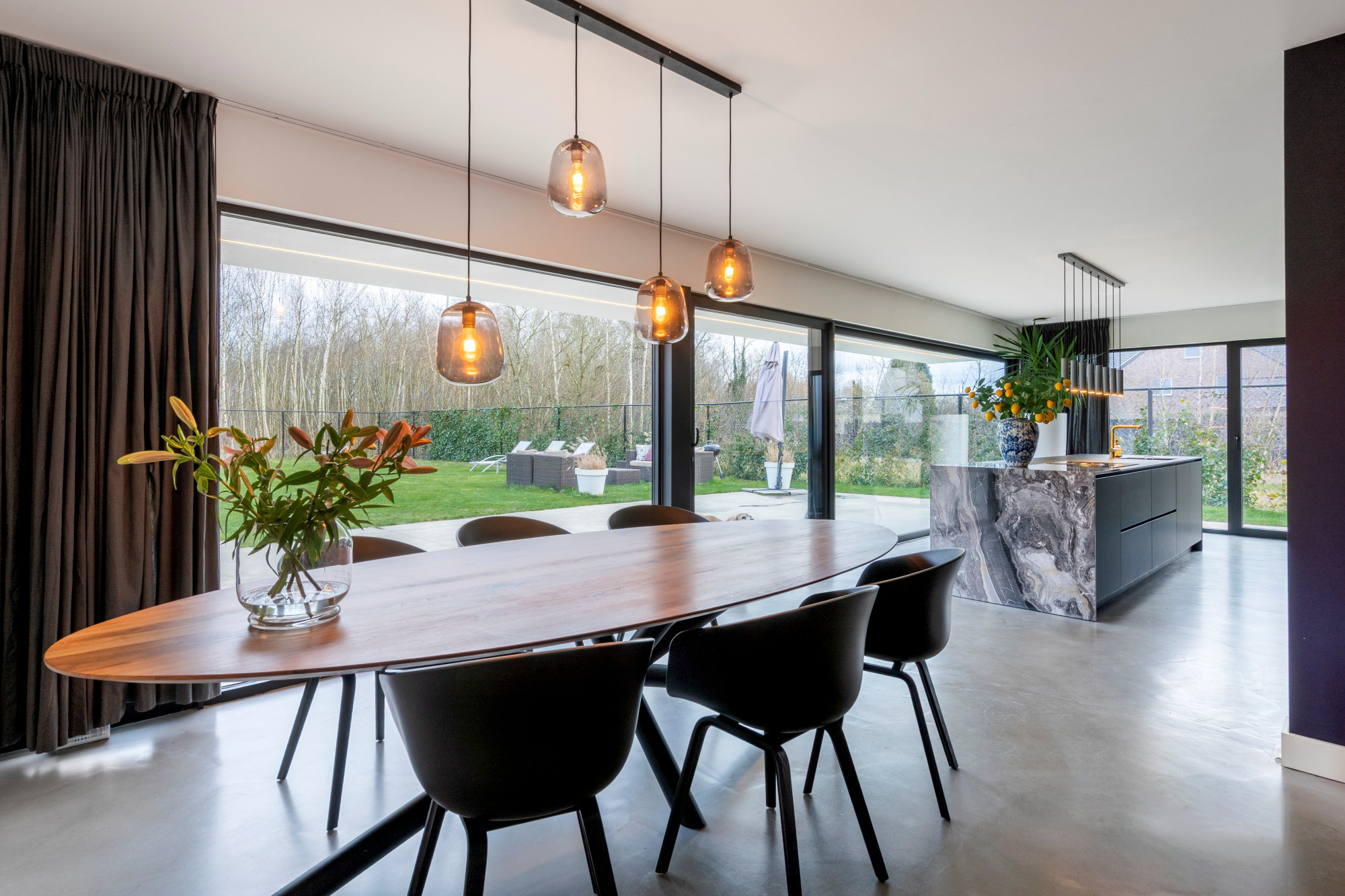 This well-finished and logically laid-out villa with optimal natural light is located near the Hoge Kempen National Park. A few minutes by car, there are important connecting roads providing access to various centres of interest and the Dutch border. The landscaped garden, oriented to the southeast, is fully fenced and accessible via an automatic sliding gate.