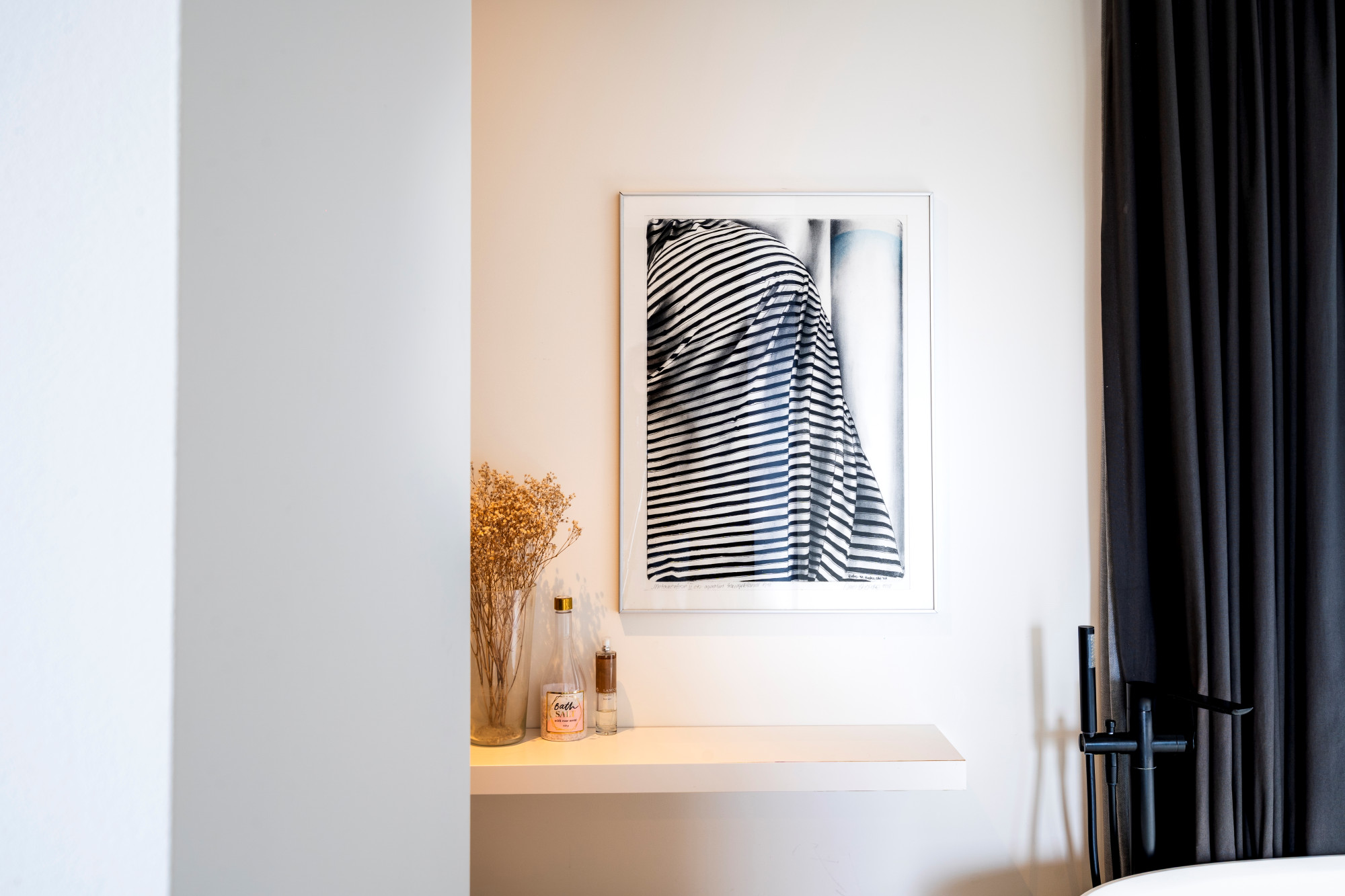 The spacious and central entrance hall provides access to the guest toilet, an office area, the bright living room and an exceptional open-plan kitchen. Adjacent is the storeroom cum linen room.