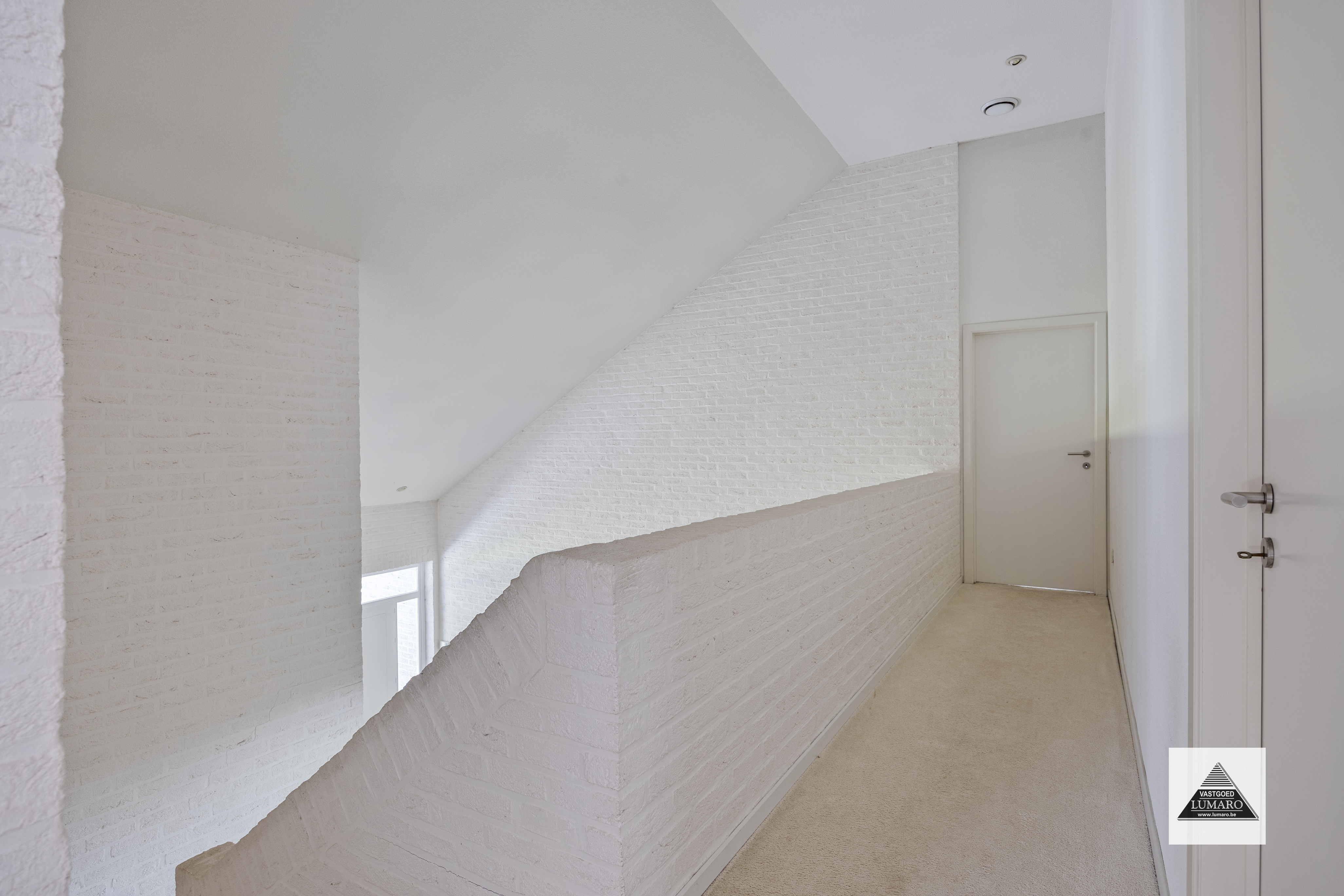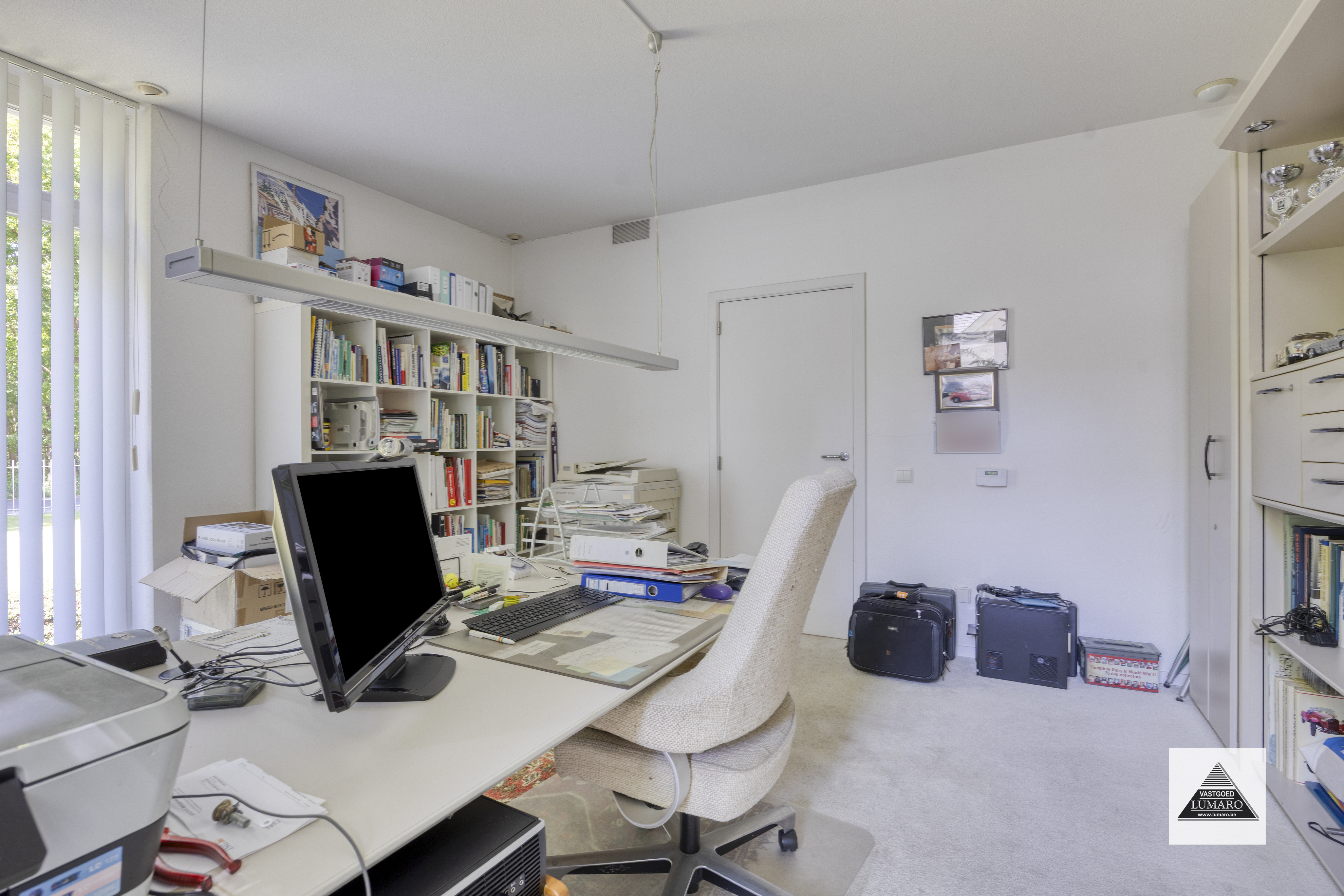 Volledig gelijkvloers wonen (slaapkamer - dressing - badkamer) + 3 slaapkamers en badkamer op de verdieping. Volledig onderkelderd. Zuidgerichte private tuin.