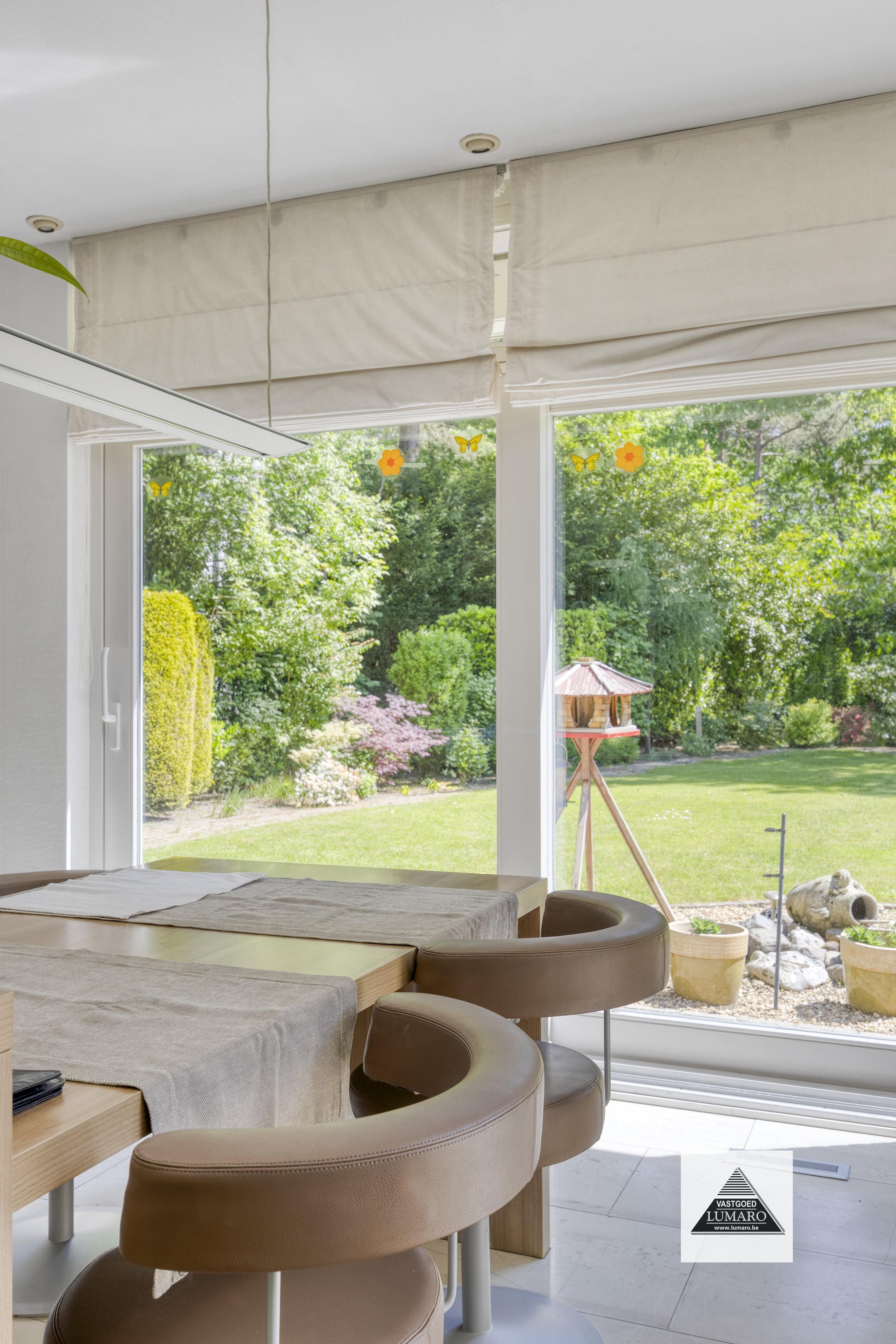 - toegang langs 3 schuifpuien van de leefruimte en 2 schuifpuien van de keuken