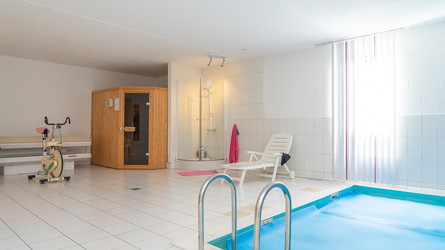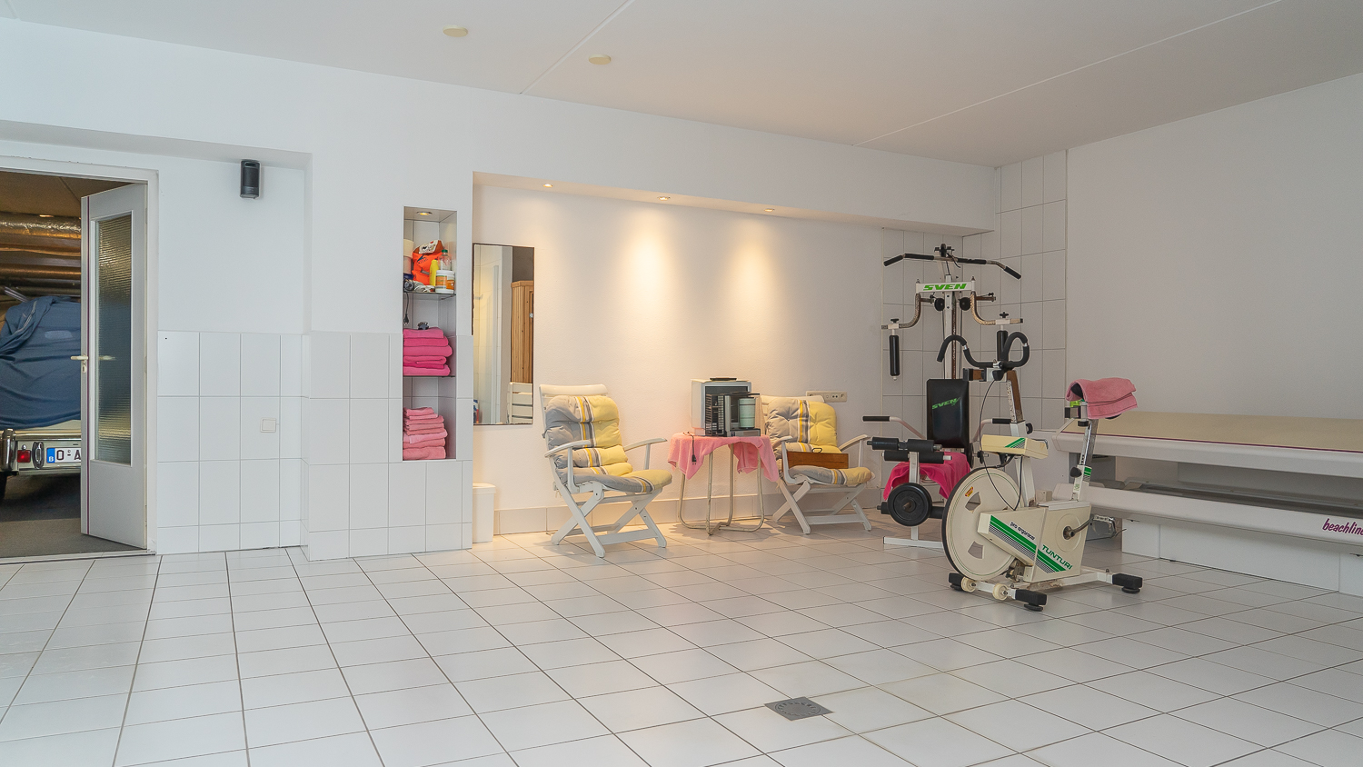 De kelderverdieping bestaat uit het wellness-gedeelte met zwembad en sauna en sanitair, werkplaats en open ruimte voor bijvoorbeeld een 8-tal auto’s …