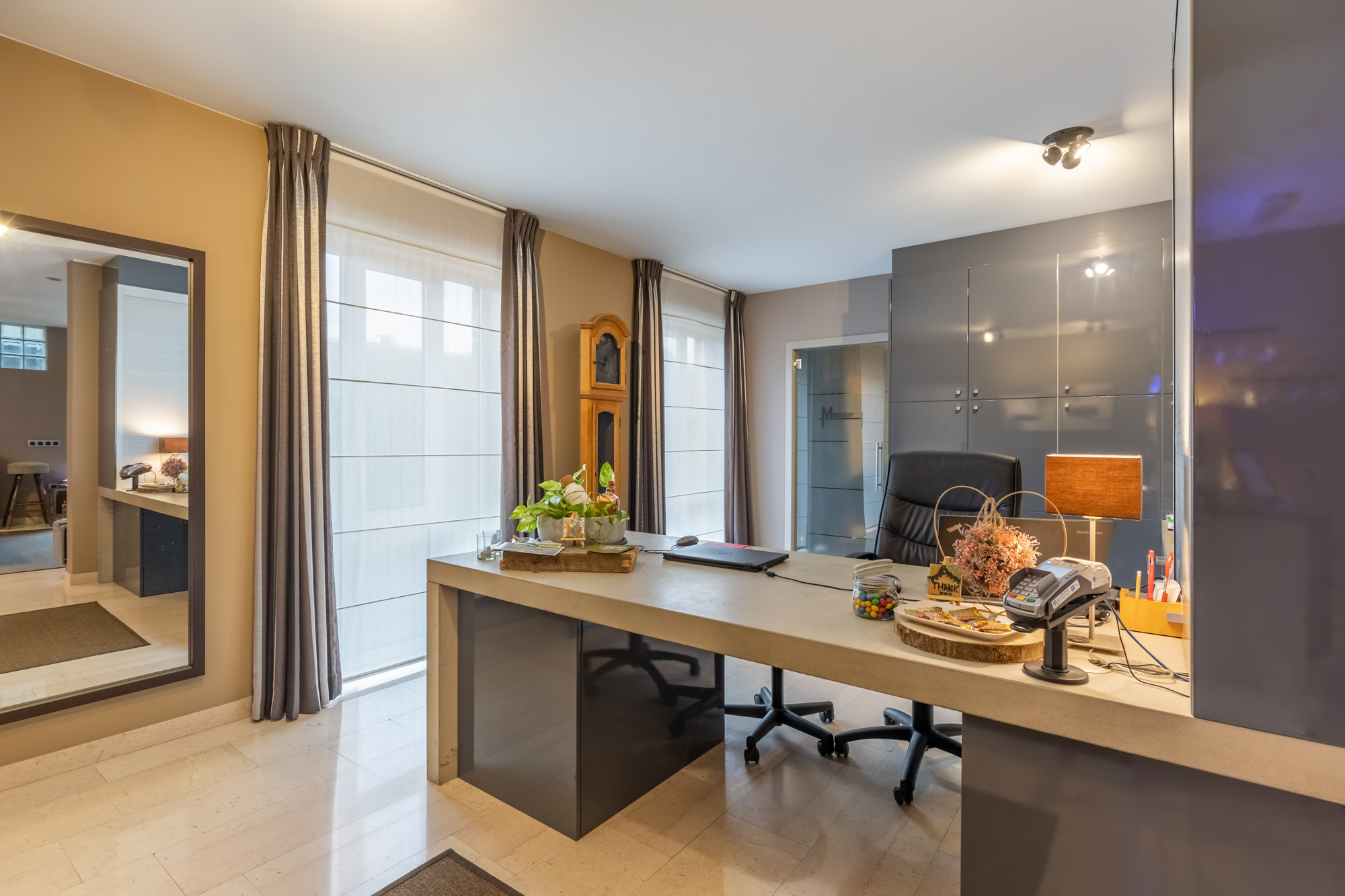 - Bureel – ontvangstruimte: (5,02 m x 3,70 m = 18,57 m²) – natuursteen