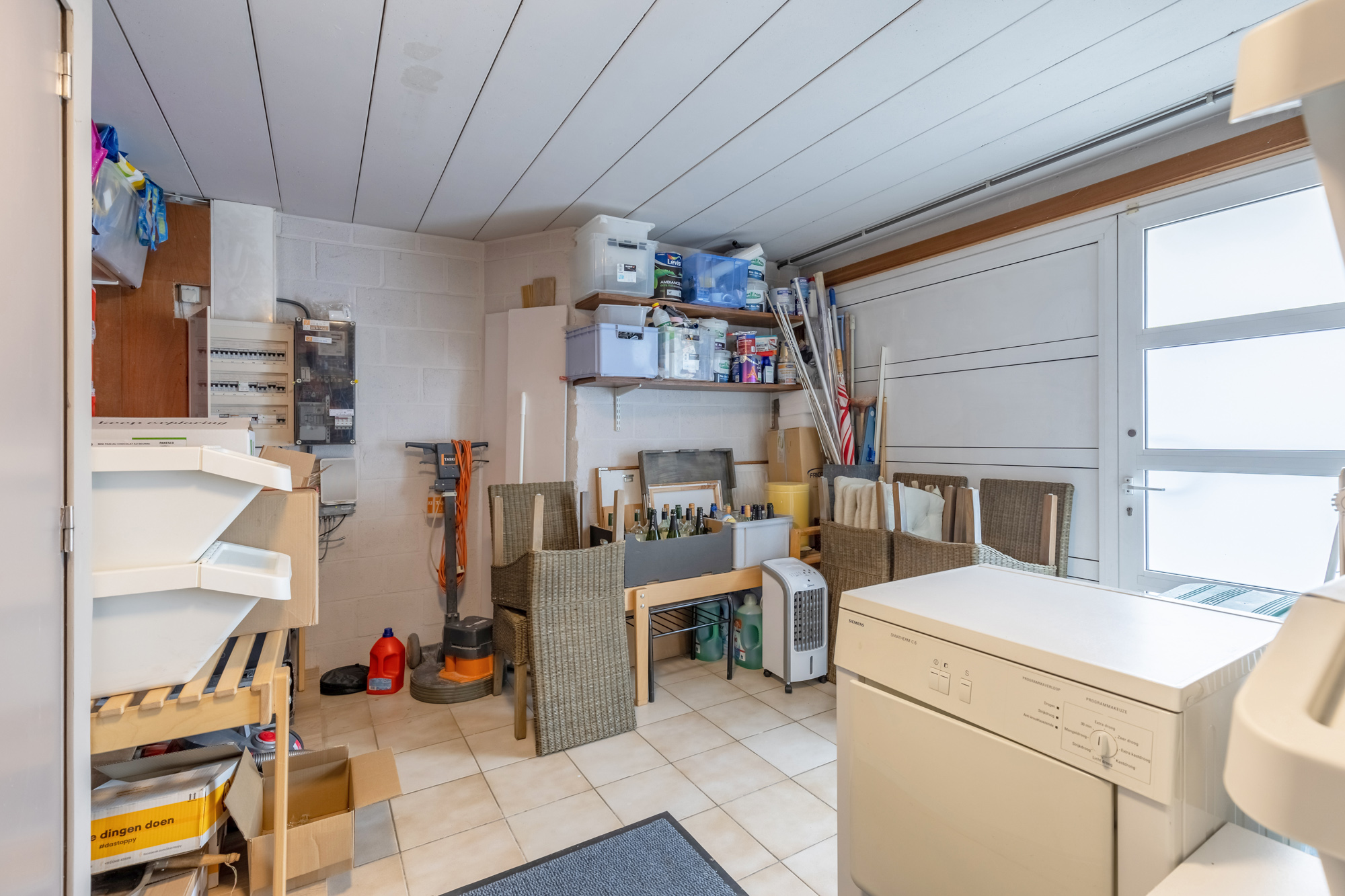 - Berging / wasplaats met aansluitingen voor wasmachine en droger ; hier zijn de elektriciteitskast en zekeringenkast.