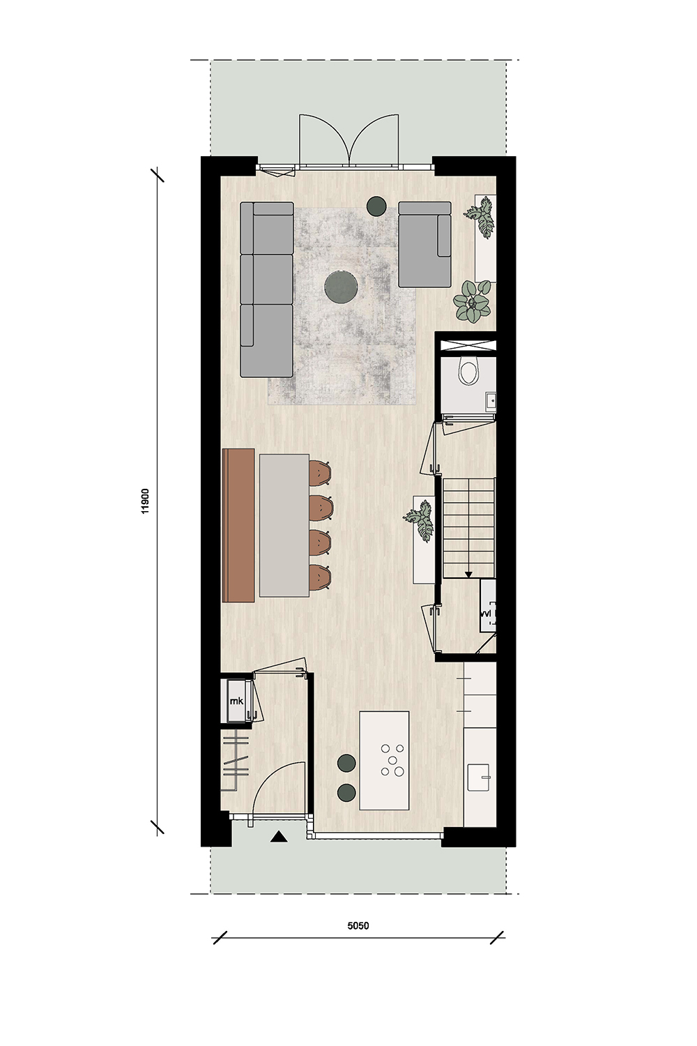 Met uitbouw 3 m en openslaande tuindeuren