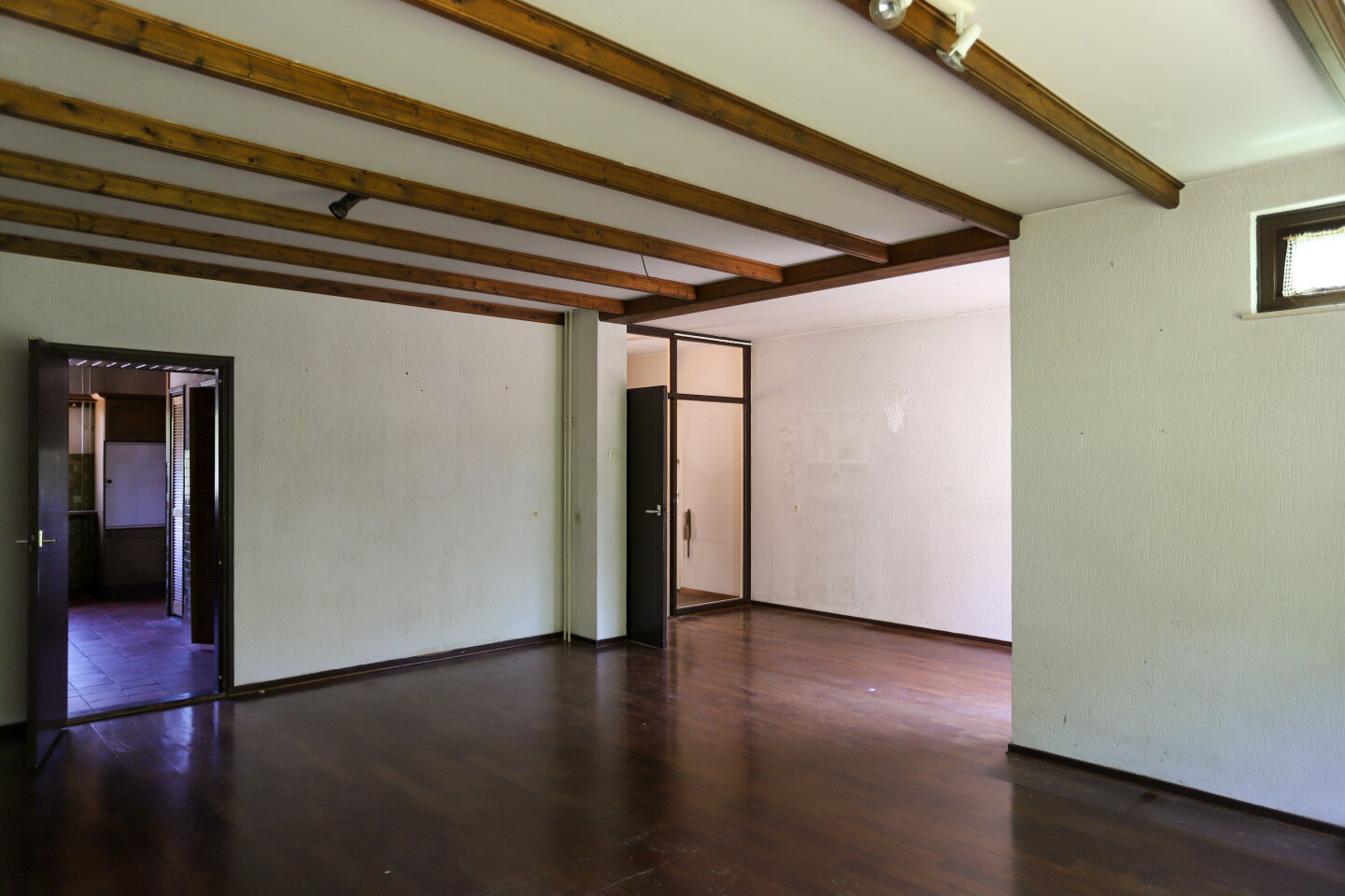 - De L-vormige woonkamer (ca. 35 m²) is mooi licht door de grote raampartijen. Vanuit de woonkamer is er ook toegang naar de tuin en keuken;