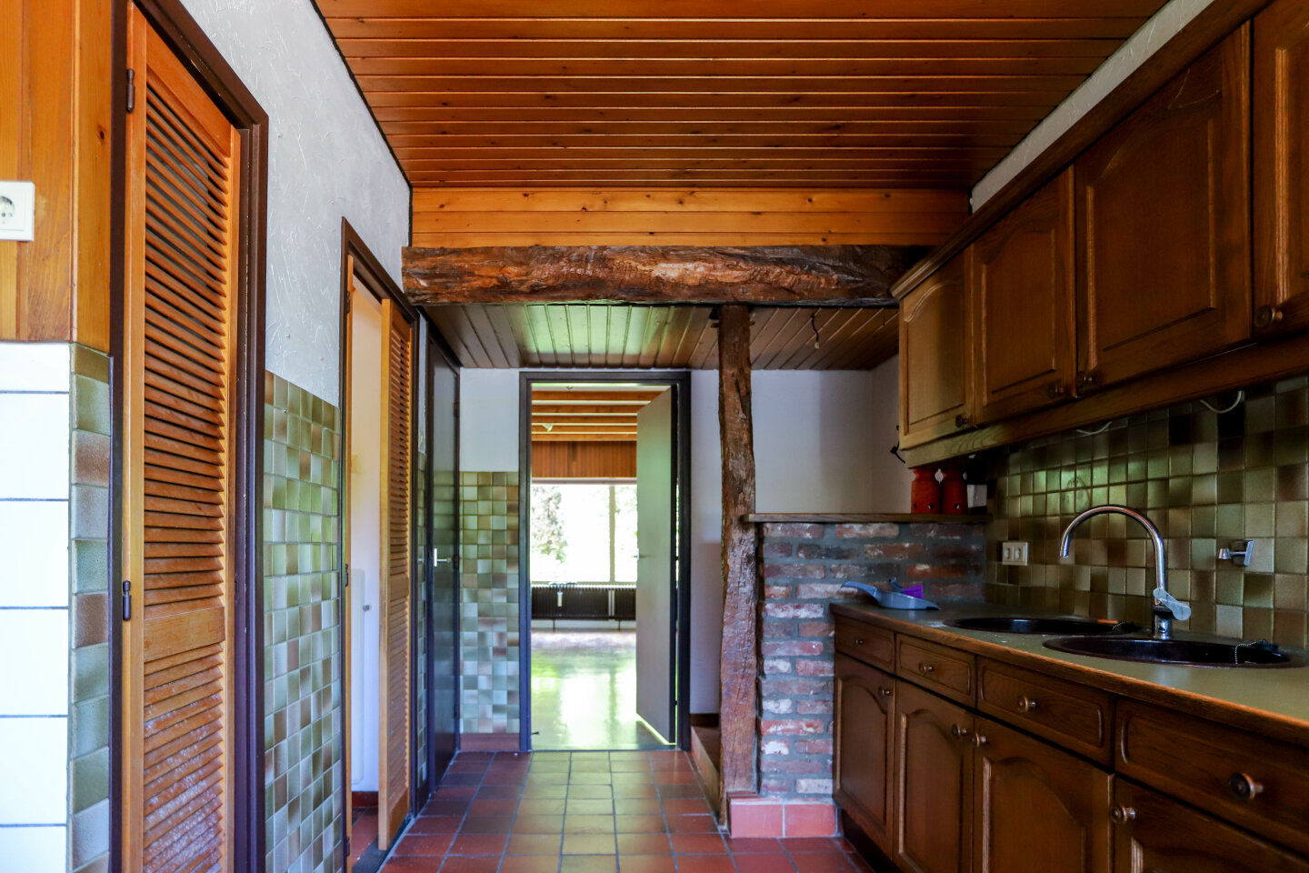 - De aan de straatkant gelegen gesloten keuken (ca. 13 m²) is voorzien van een tegelvloer en verouderde keukenblok;