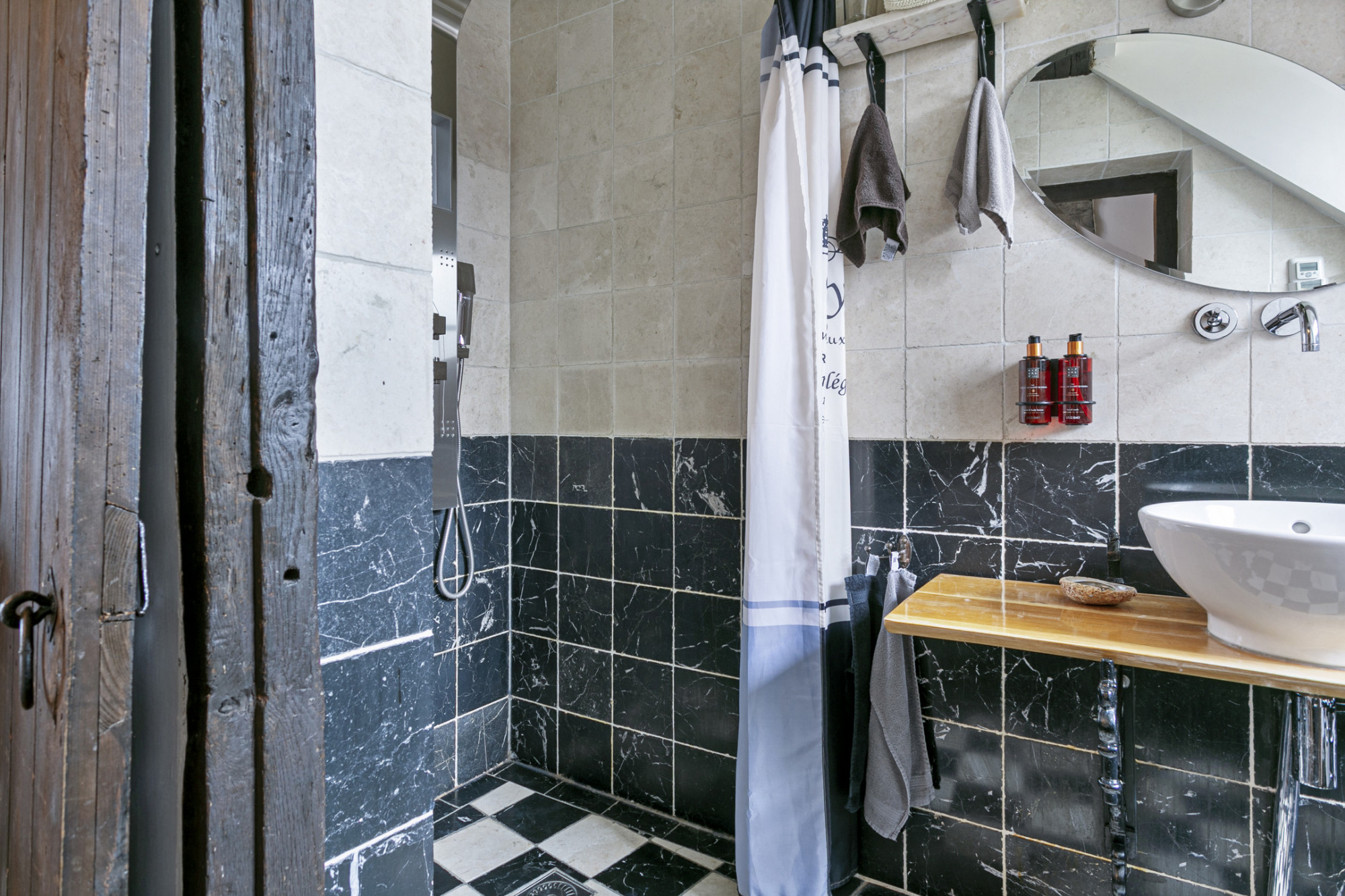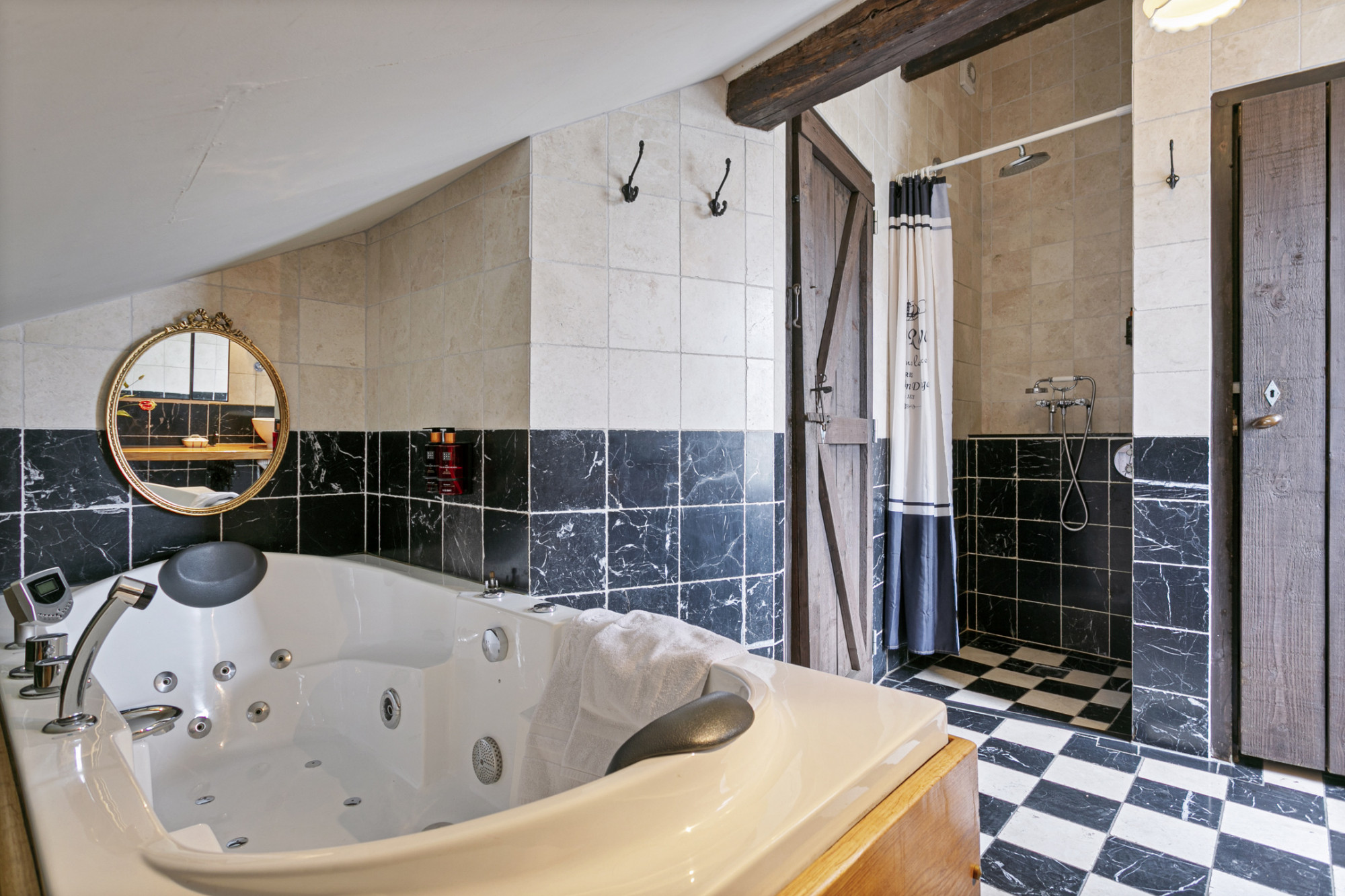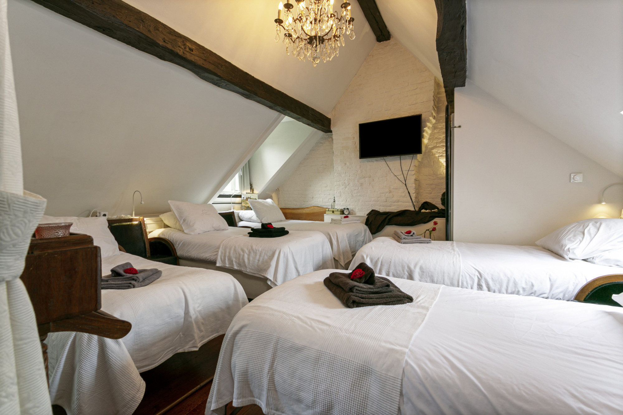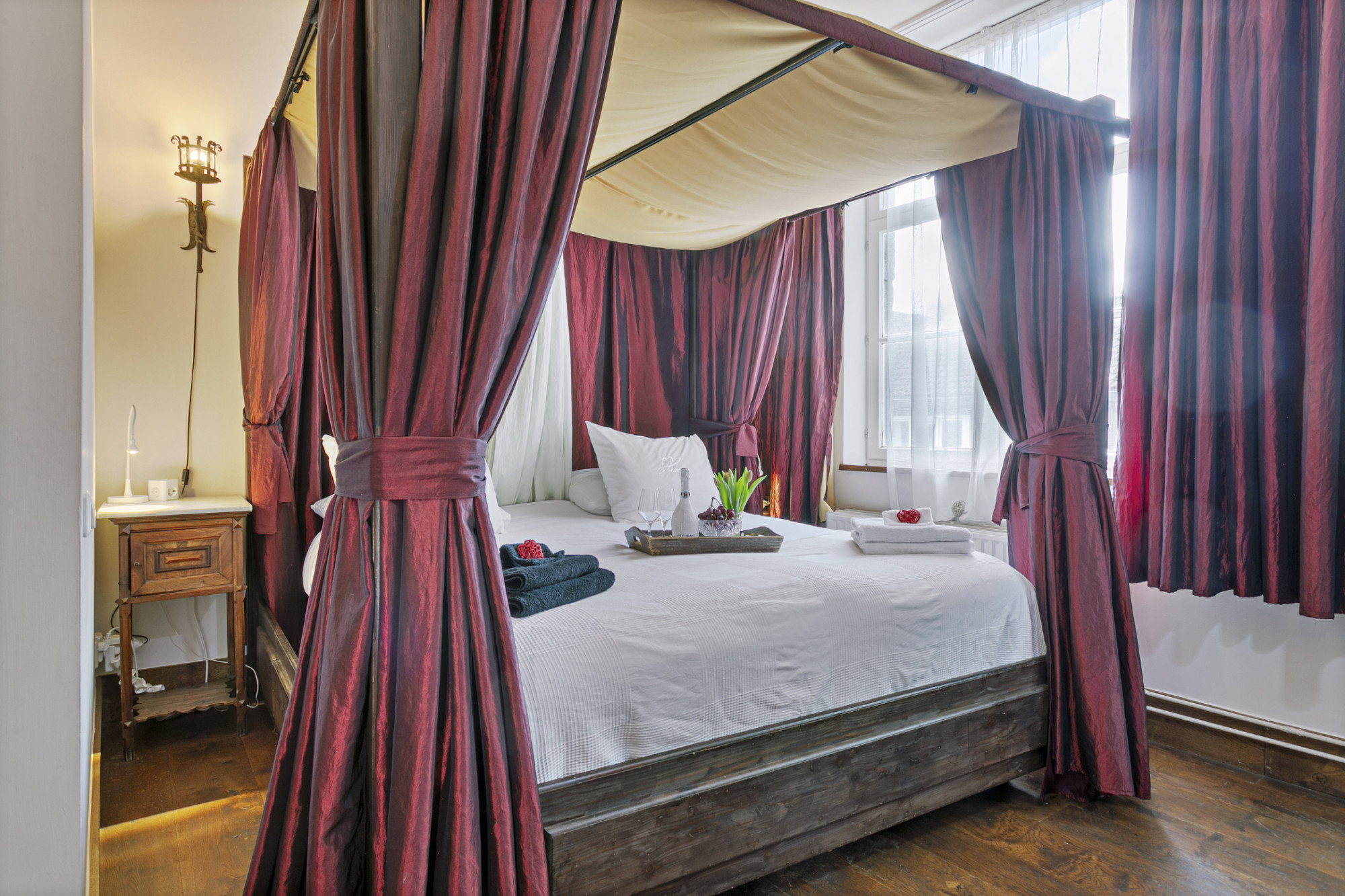 De slaapkamer achter de bibliotheek heeft 2 verdiepingen boven de poortvleugel, alwaar een kantoor ingericht kan worden.
