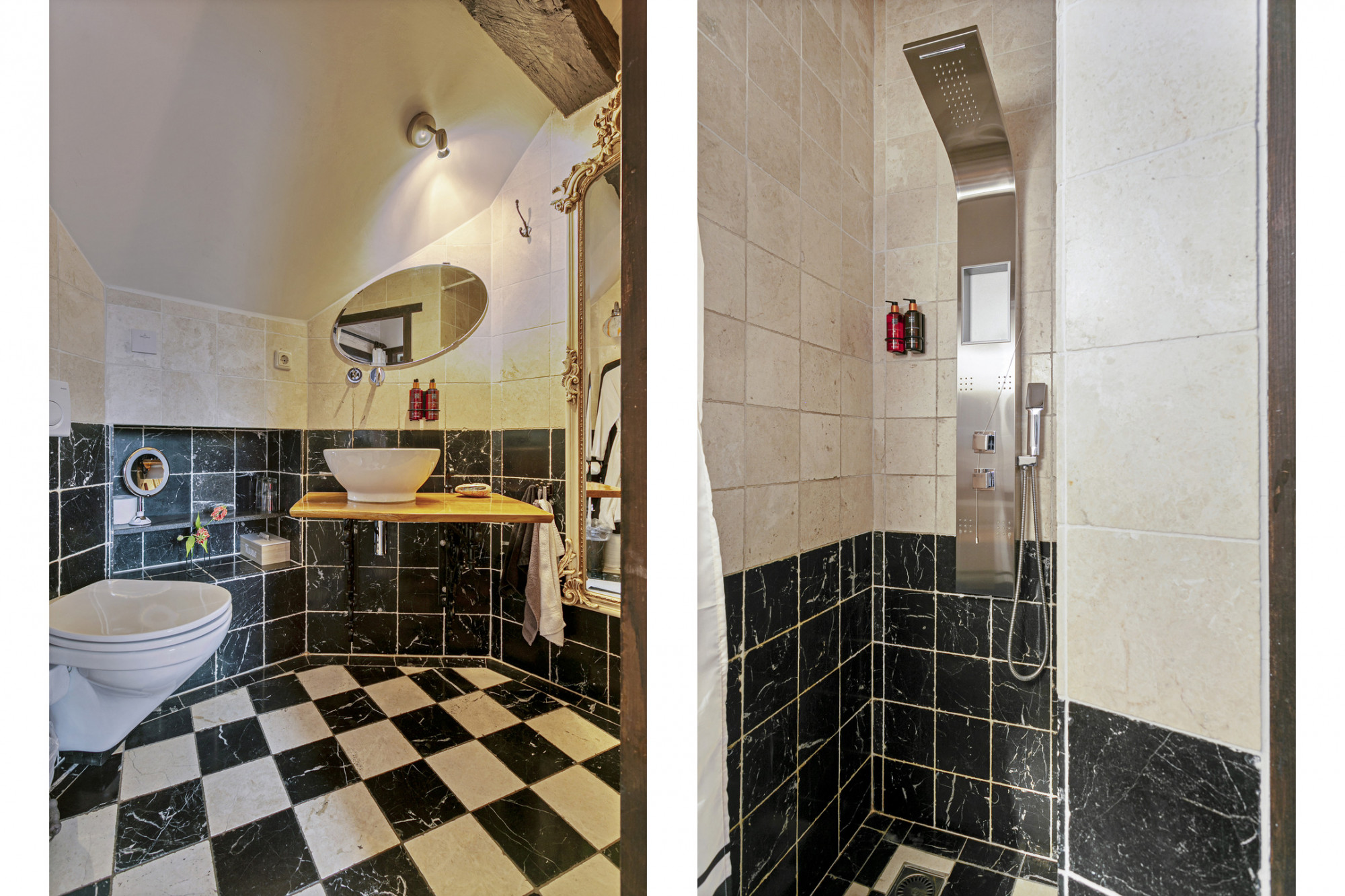 De vaste trappartij naar de tweede verdieping biedt toegang tot 2 slaapkamers met ieder een eigen badkamer. Beide badkamers zijn voorzien van vloerverwarming, een inloopdouche, toilet en badmeubel.