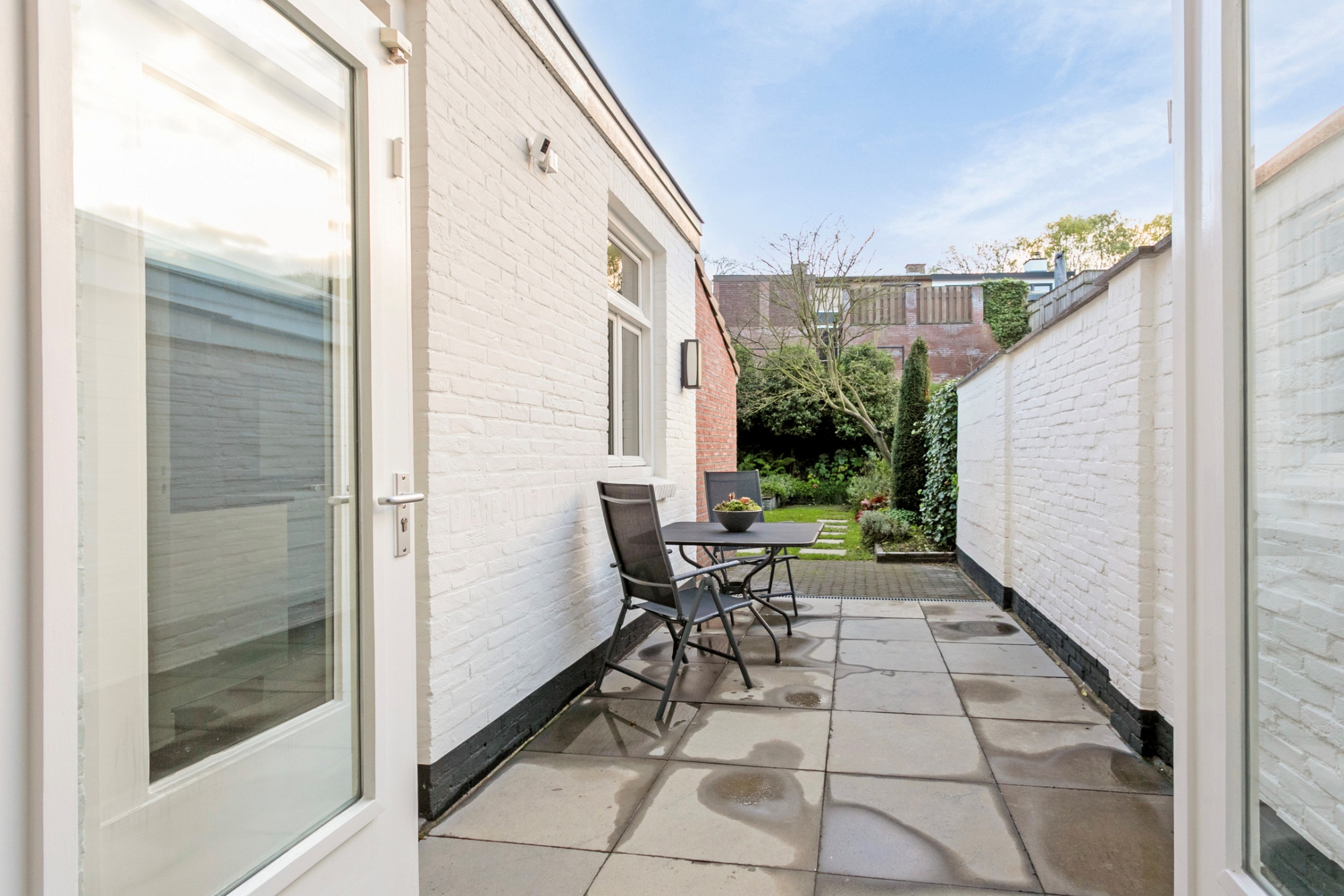De royale achtertuin, gesitueerd op het zuiden, geniet van veel privacy en beschikt over twee terrassen en veel groen.