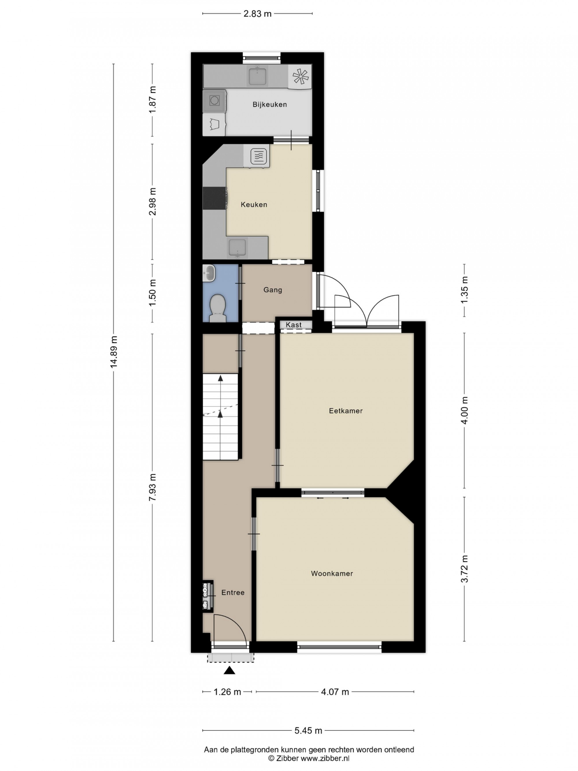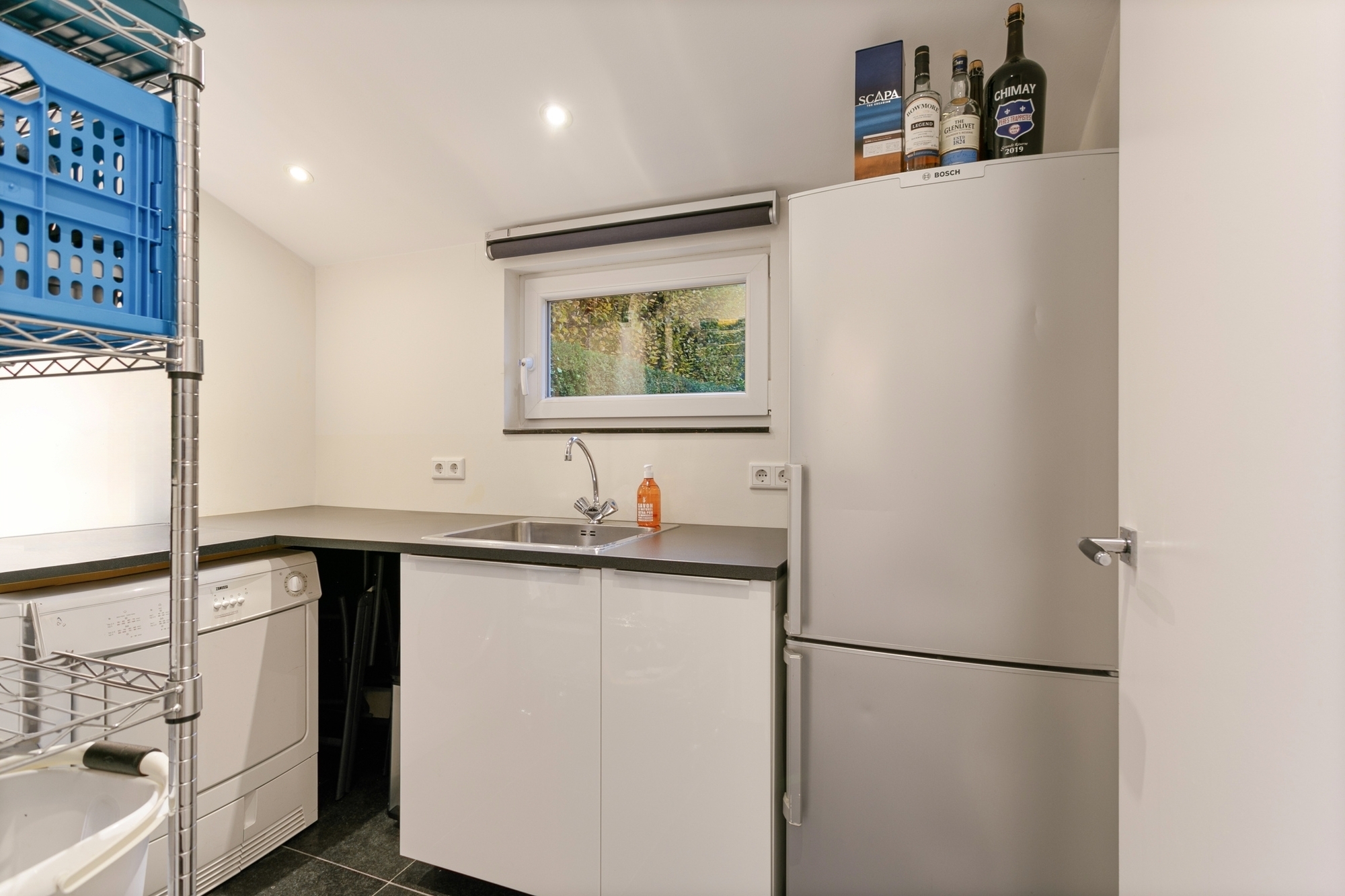 Vanuit de keuken kom je in de volledig geïsoleerde bijkeuken (5m²) met keukenblok, c.v. installatie, witgoedaansluitingen en daarnaast voldoende ruimte voor een provisiekast.