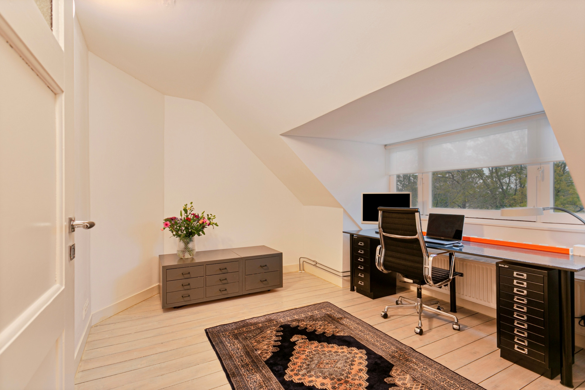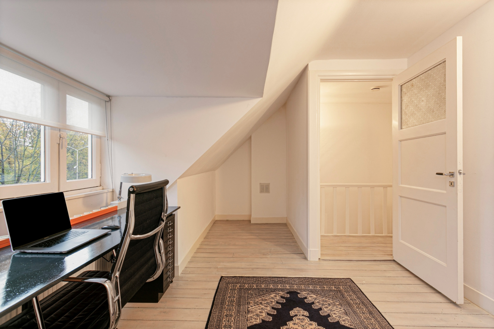 De stijlvolle houten trap vervolgt zijn weg naar de tweede verdieping. Op deze verdieping zijn nog twee slaapkamers gelegen van respectievelijk 14m² en 13m². Beide slaapkamers zijn voorzien van een dakkapel en beschikken over eenzelfde houten plankenvloer als in de rest van de woning.