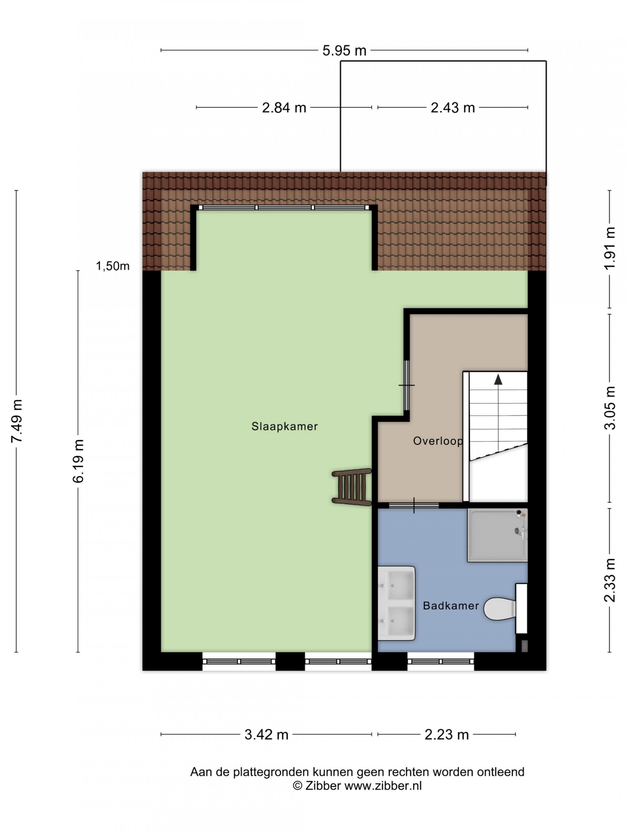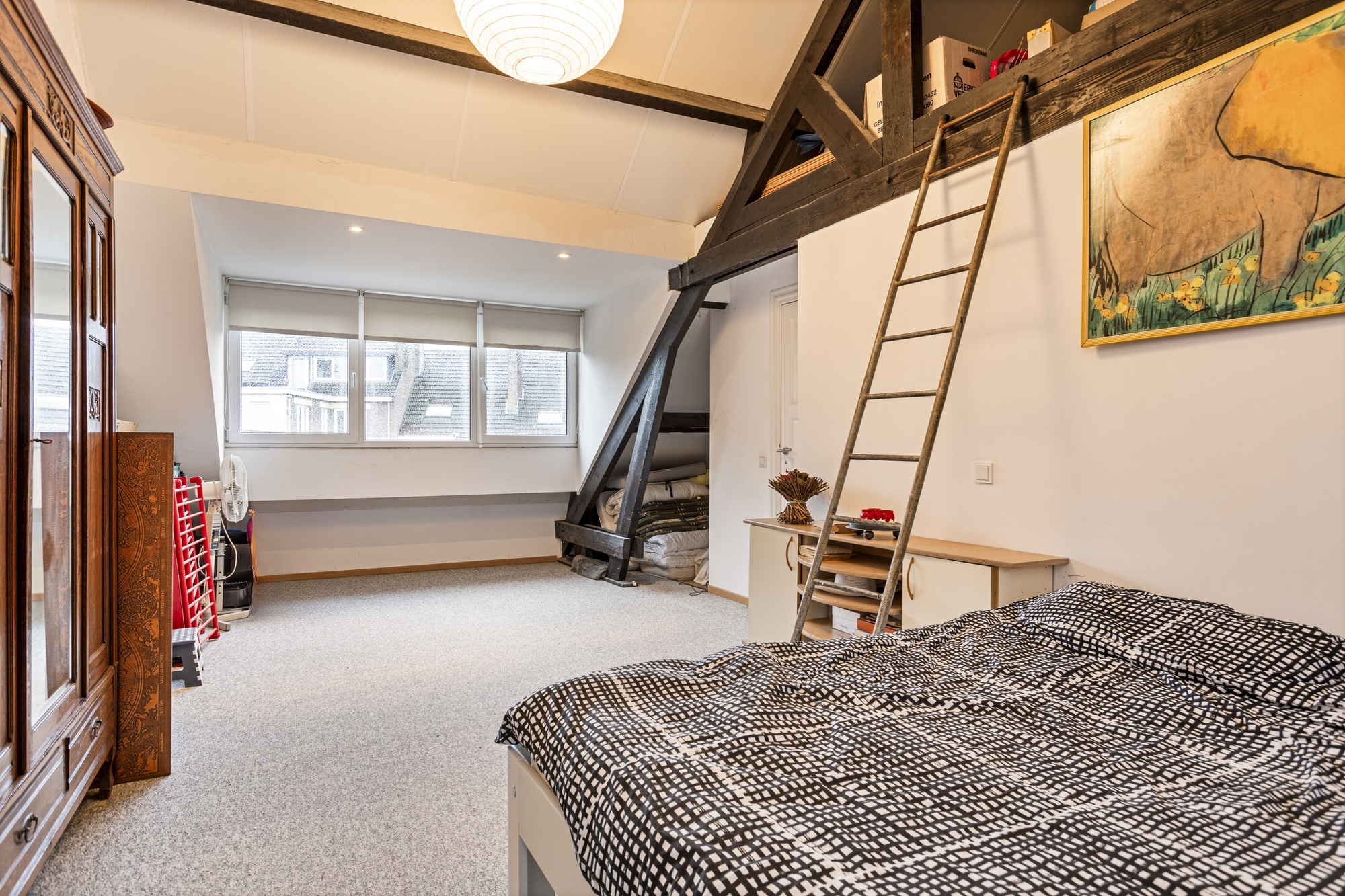 De royale slaapkamer (25m²), met een nokhoogte van 4 meter, beschikt over een dakkapel en vliering met voldoende opbergmogelijkheden. De badkamer (6m²) is uitgerust met een dubbele vaste wastafel, massagedouche en wandcloset.