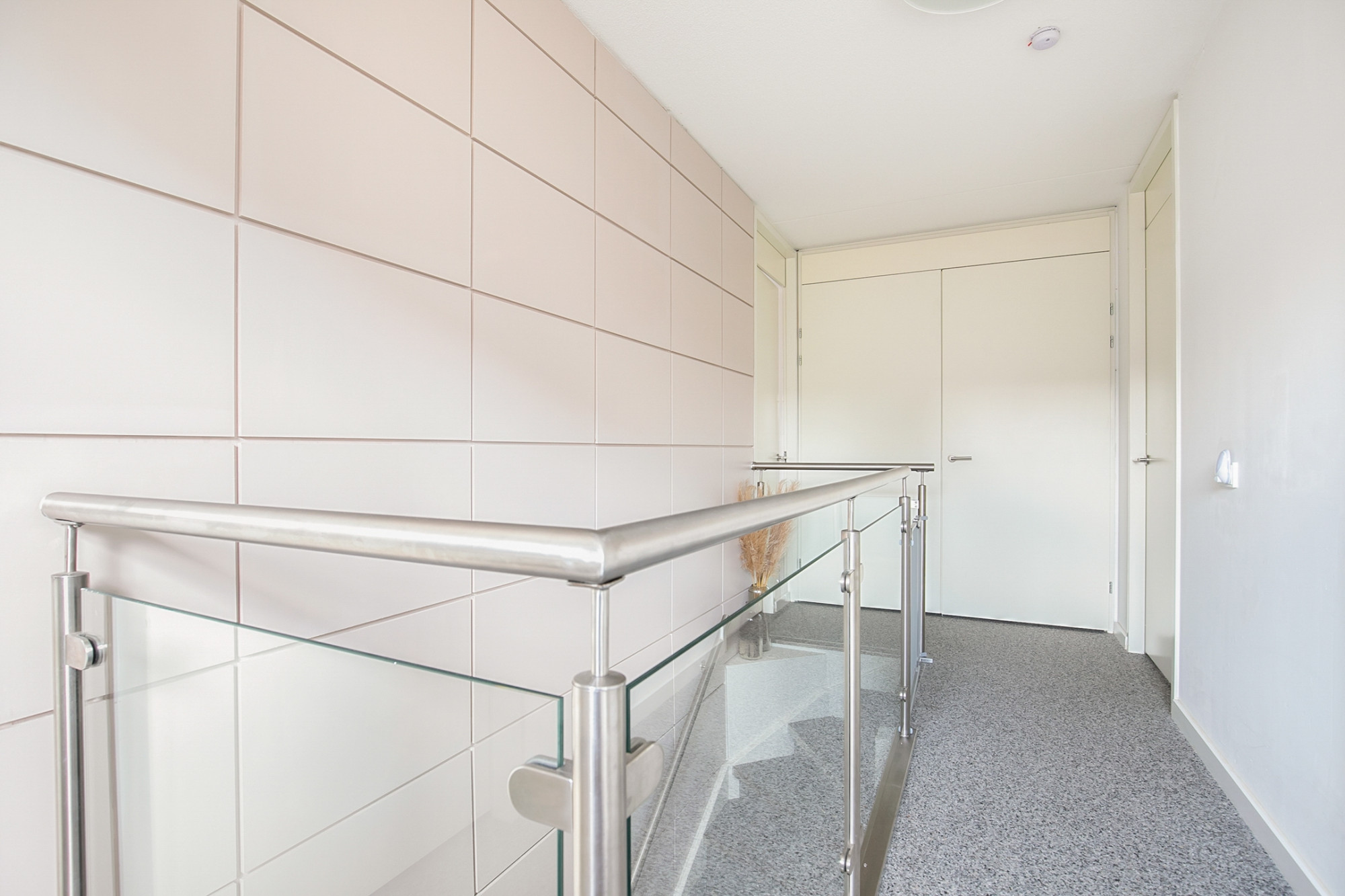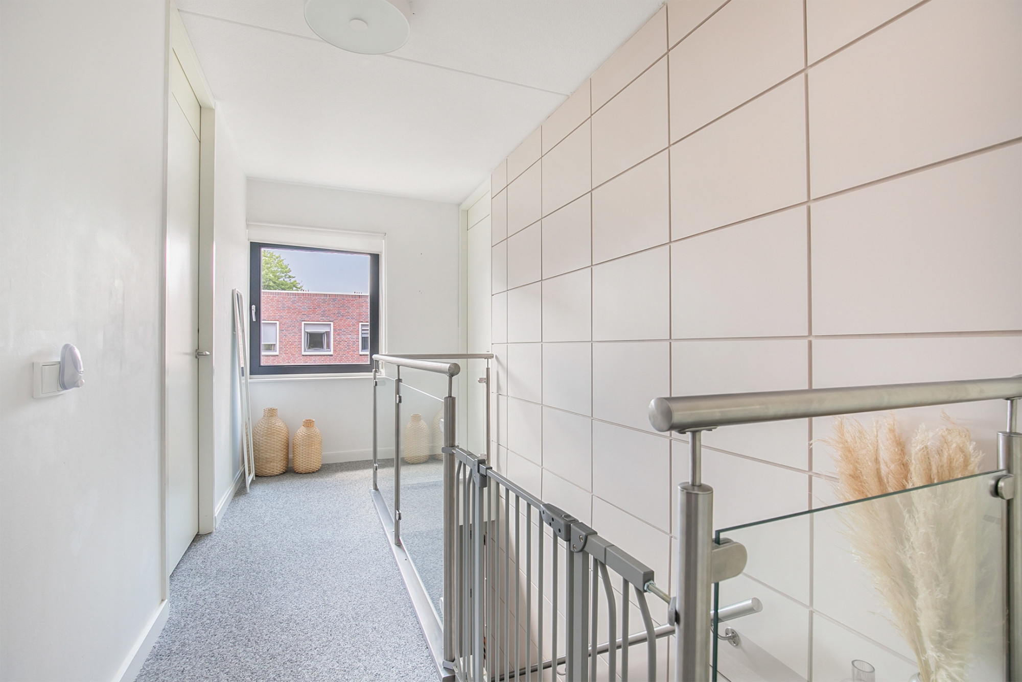Ruime overloop met toegang naar 3 slaapkamers, de badkamer en een royale berging met wasmachineaansluiting, WTW installatie en c.v. ketel.