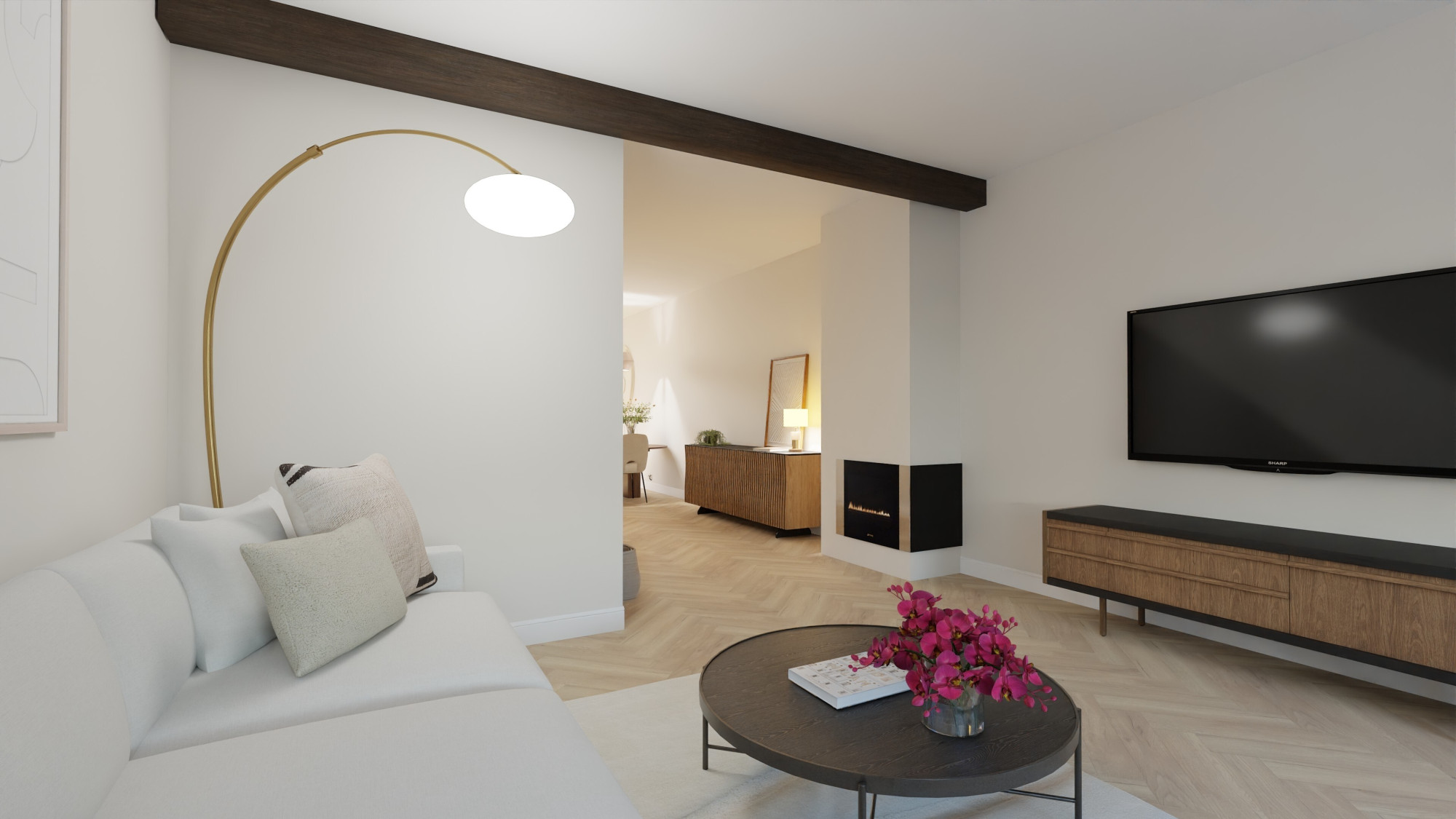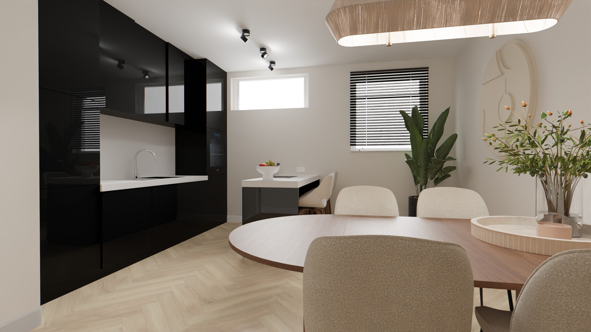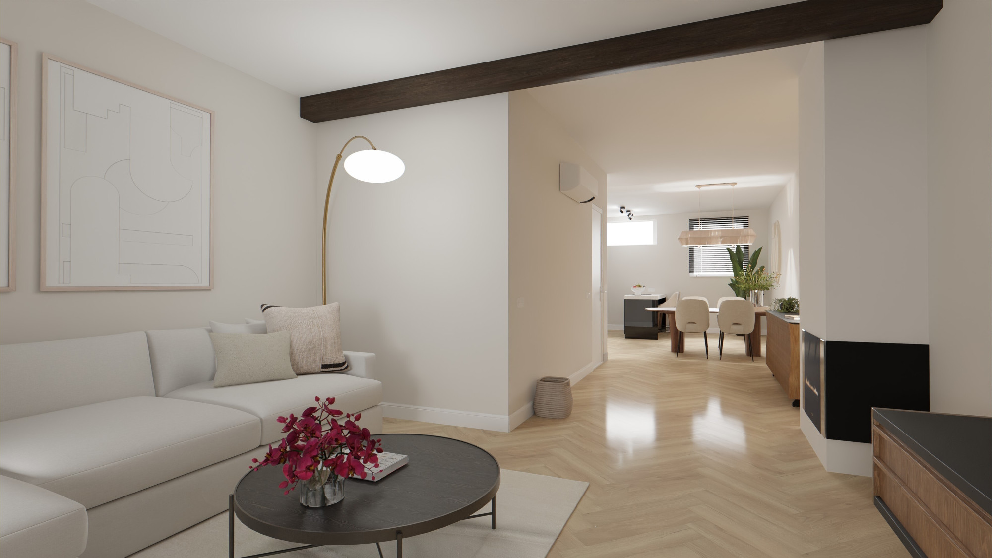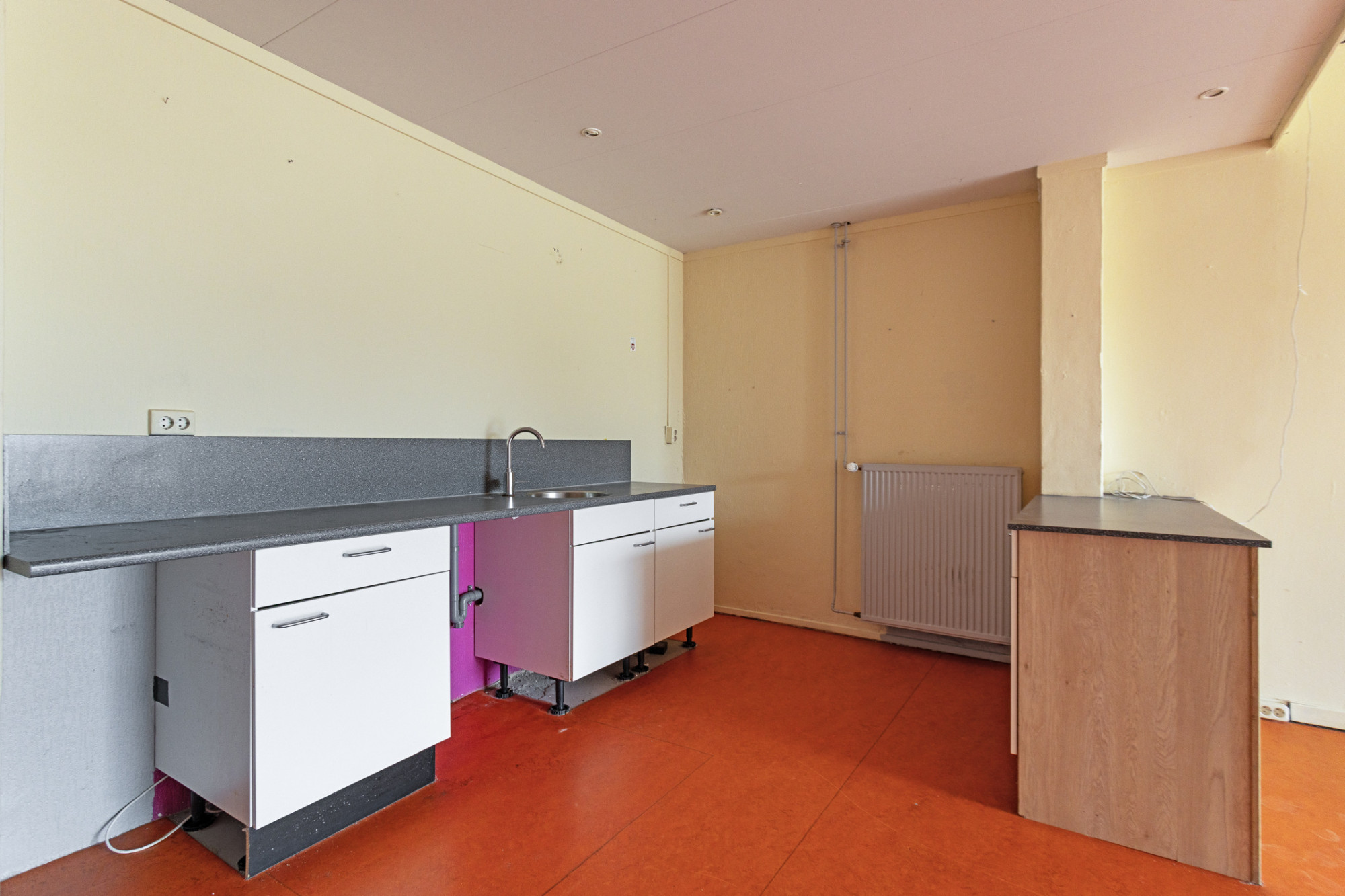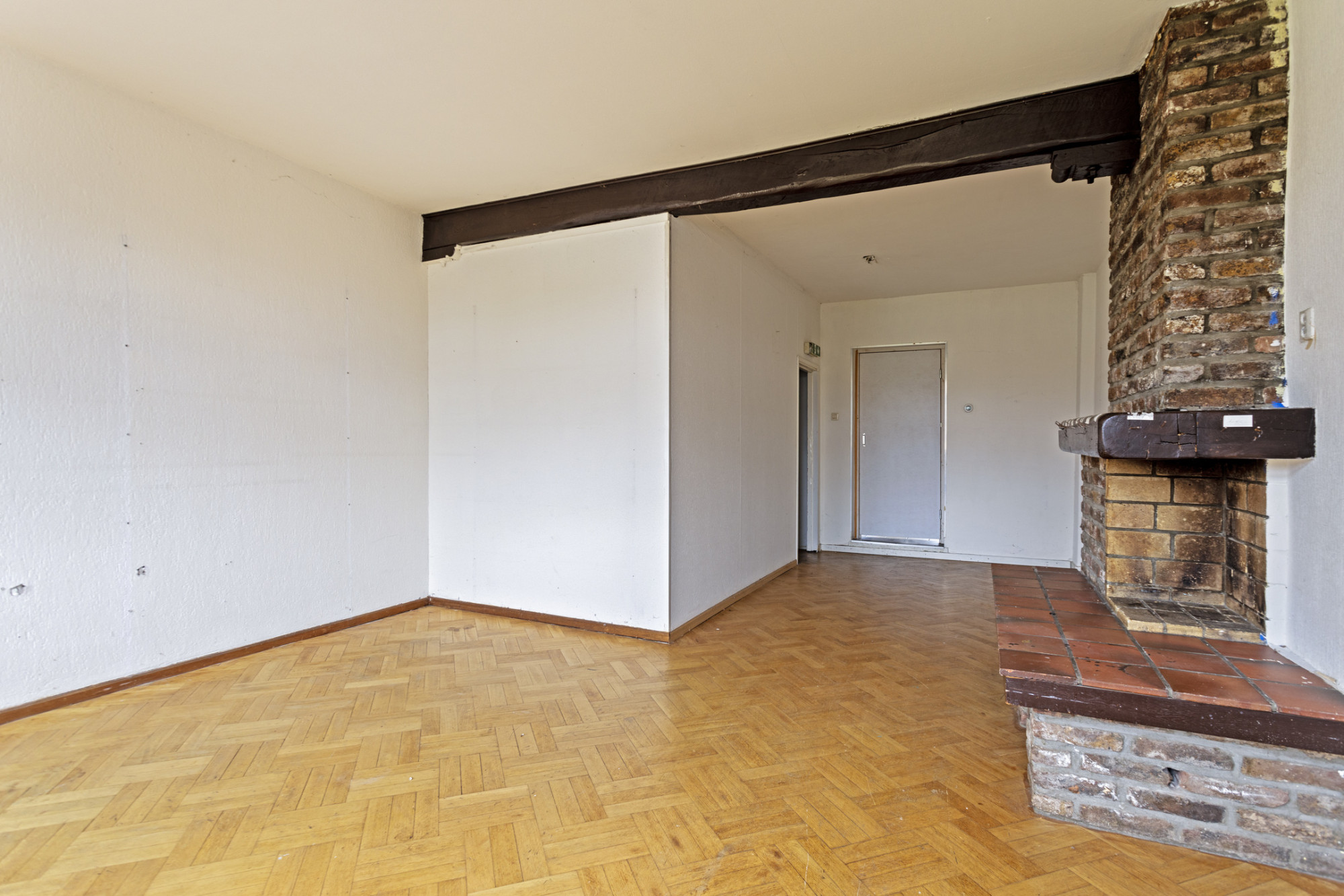 - Woonkamer met halfopen keuken van totaal ca. 37 m² alwaar de aansluitingen voor een keuken .