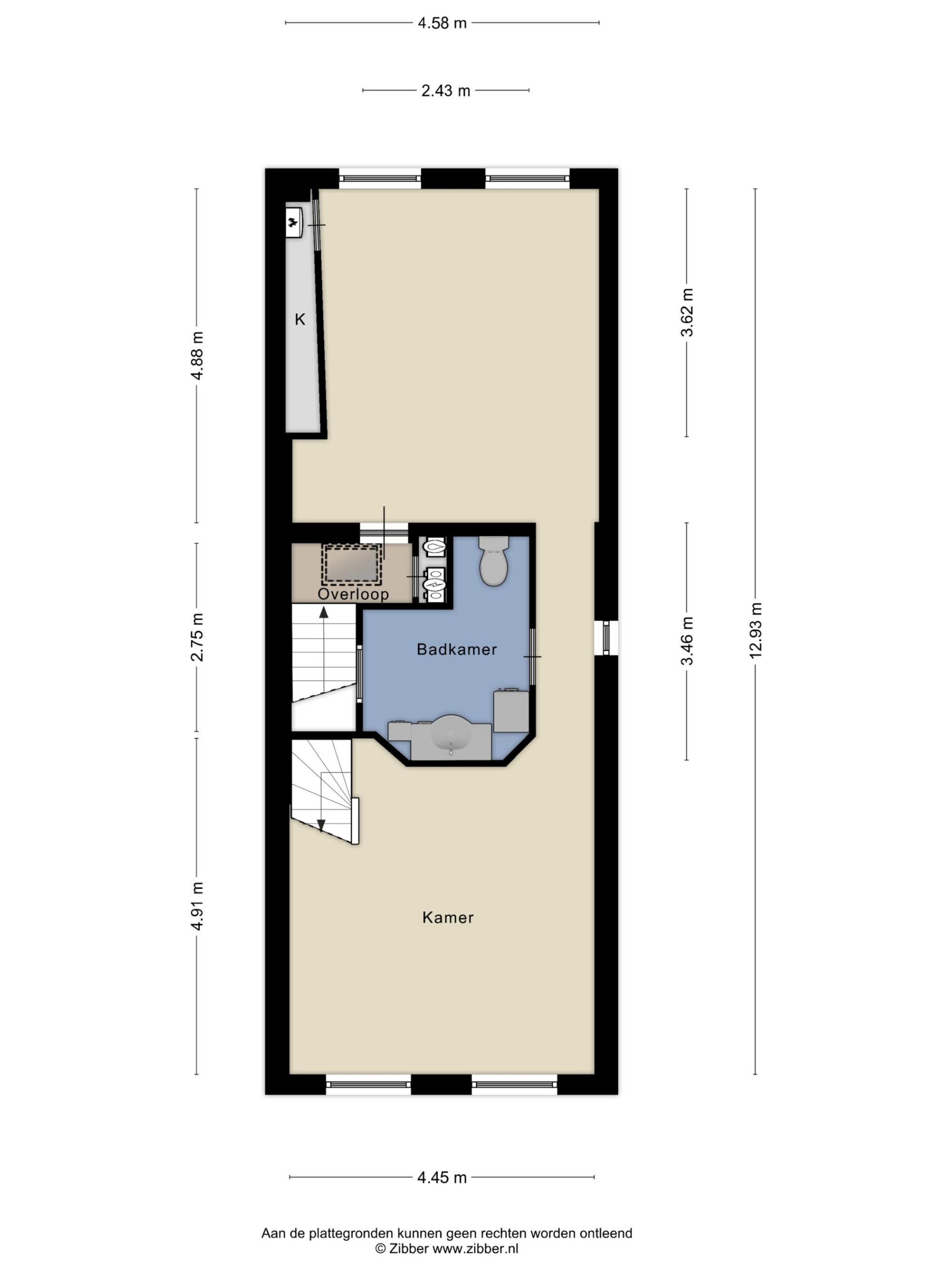 - Zolderkamer van ca. 14 m².