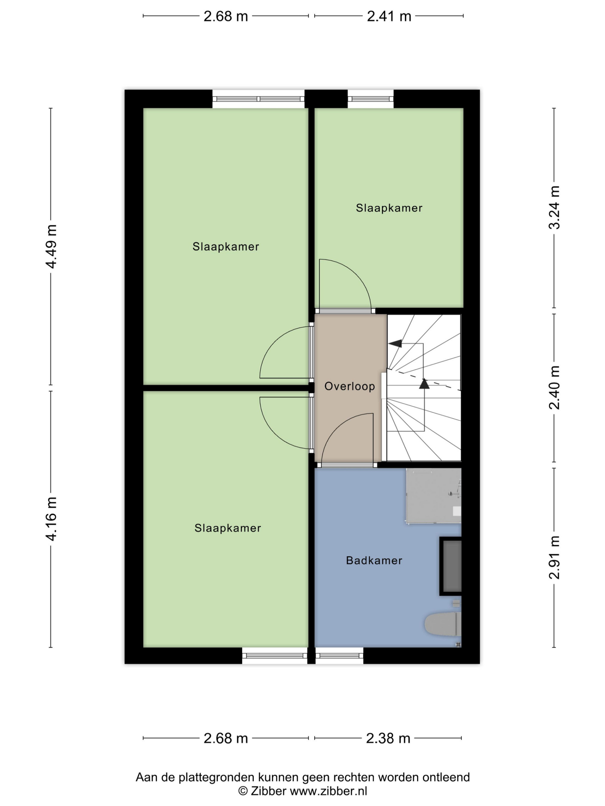 - Drie slaapkamers van respectievelijk ca. 8 m², ca. 11 m² en ca. 12 m².