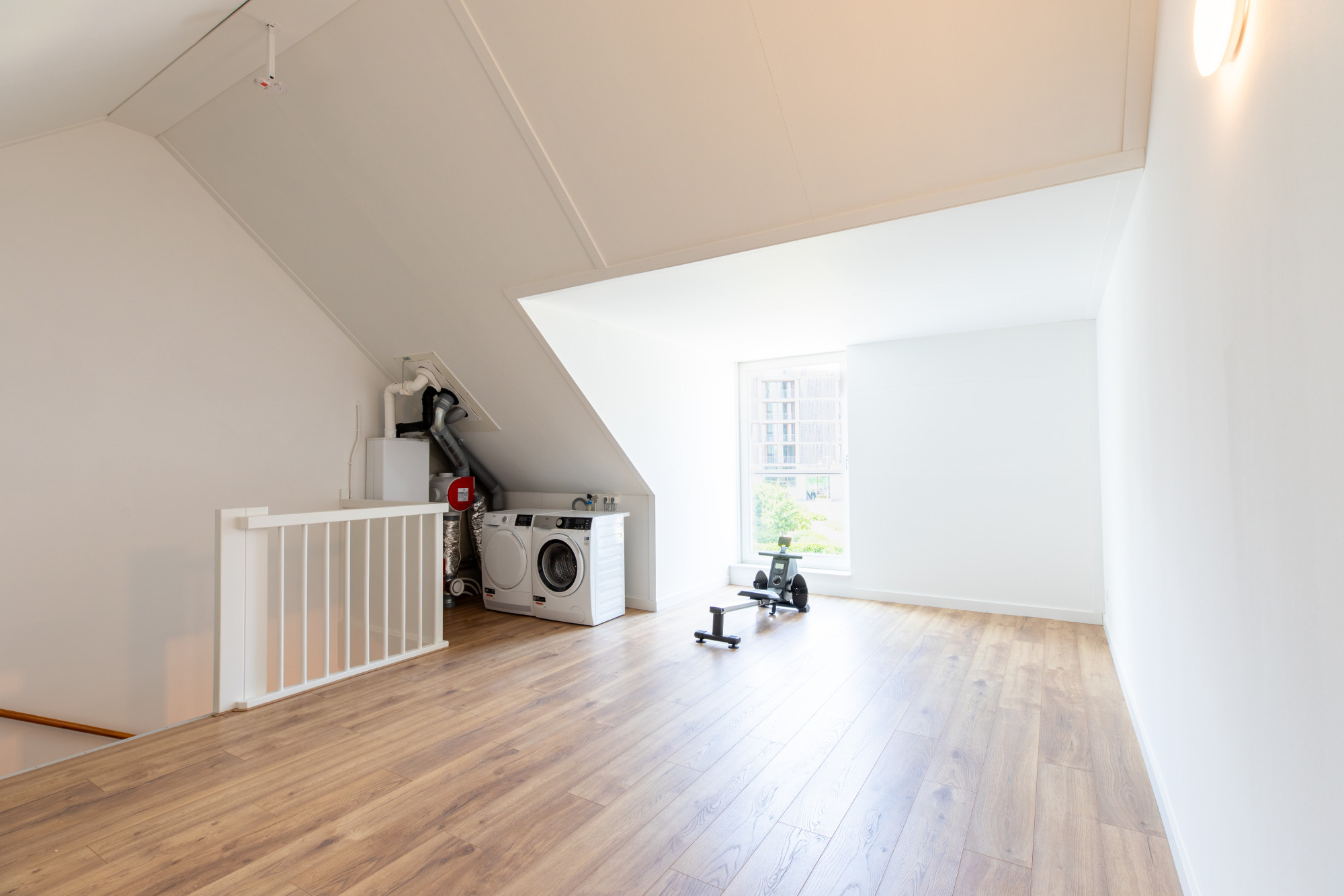 - Grote kamer van ca. 25 m² met een dakkapel aan de voorzijde en voorzien van een mooie laminaatvloer, opstelplaats van de HR Combi installatie, unit mechanische ventilatie en aansluiting voor de wasmachine.