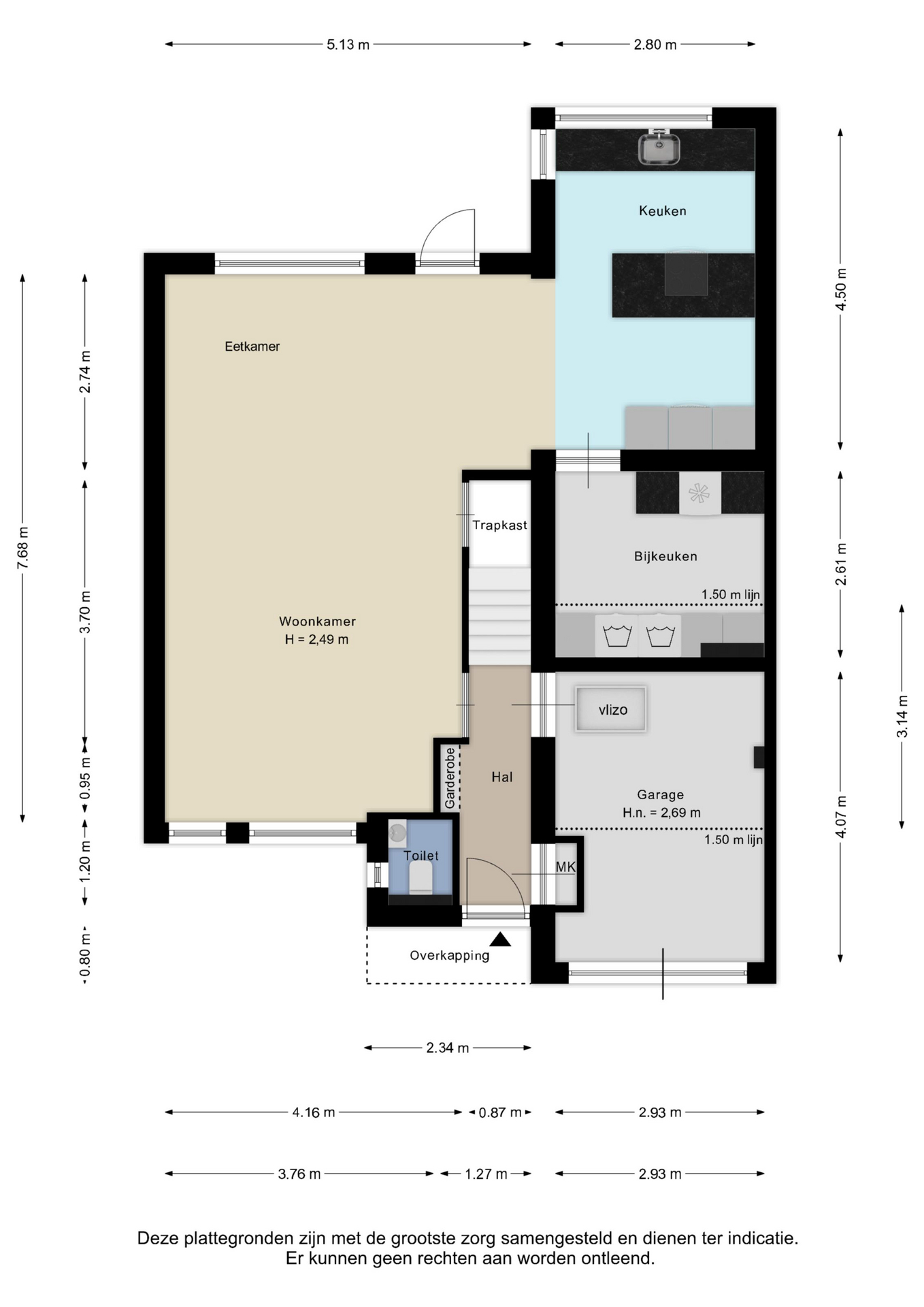Alle door ons kantoor verstrekte informatie omtrent onroerende zaken, moet beschouwd worden als een uitnodiging om in onderhandeling te treden, en is geheel vrijblijvend! Alle vermelde maten en afmetingen zijn slechts bij benadering. Aan deze beperkte info kunnen geen rechten worden ontleend. Indien in enige documentatie of op enige website informatie staat die niet overeen komt met de werkelijkheid, dan geldt de feitelijke situatie waarin de woning zich bevindt, zoals koper deze tijdens de bezichtiging heeft kunnen waarnemen, en wordt de woning in deze feitelijke situatie/staat verkocht. Een (eventueel) bijgevoegde plattegrond dient uitsluitend als globale indicatie/visualisatie. Hieraan kunnen uitdrukkelijk geen rechten worden ontleend.