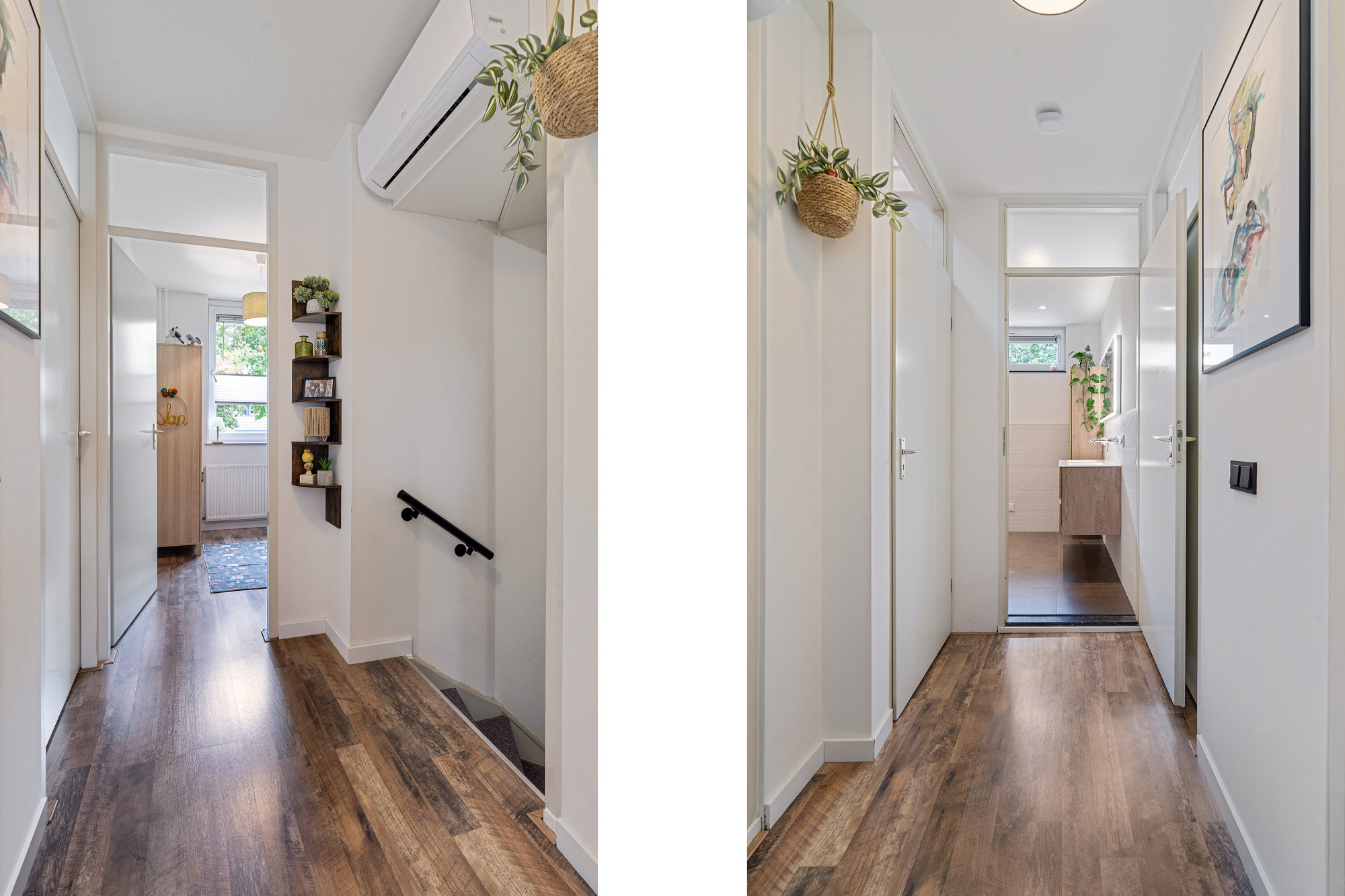 De vaste trap leidt naar een voorportaal met airco, standplaats cv-installatie(eig. 2018) en bergruimte. Aansluitend de vierde slaapkamer van ca. 11m² (voorzien van dakkapel).