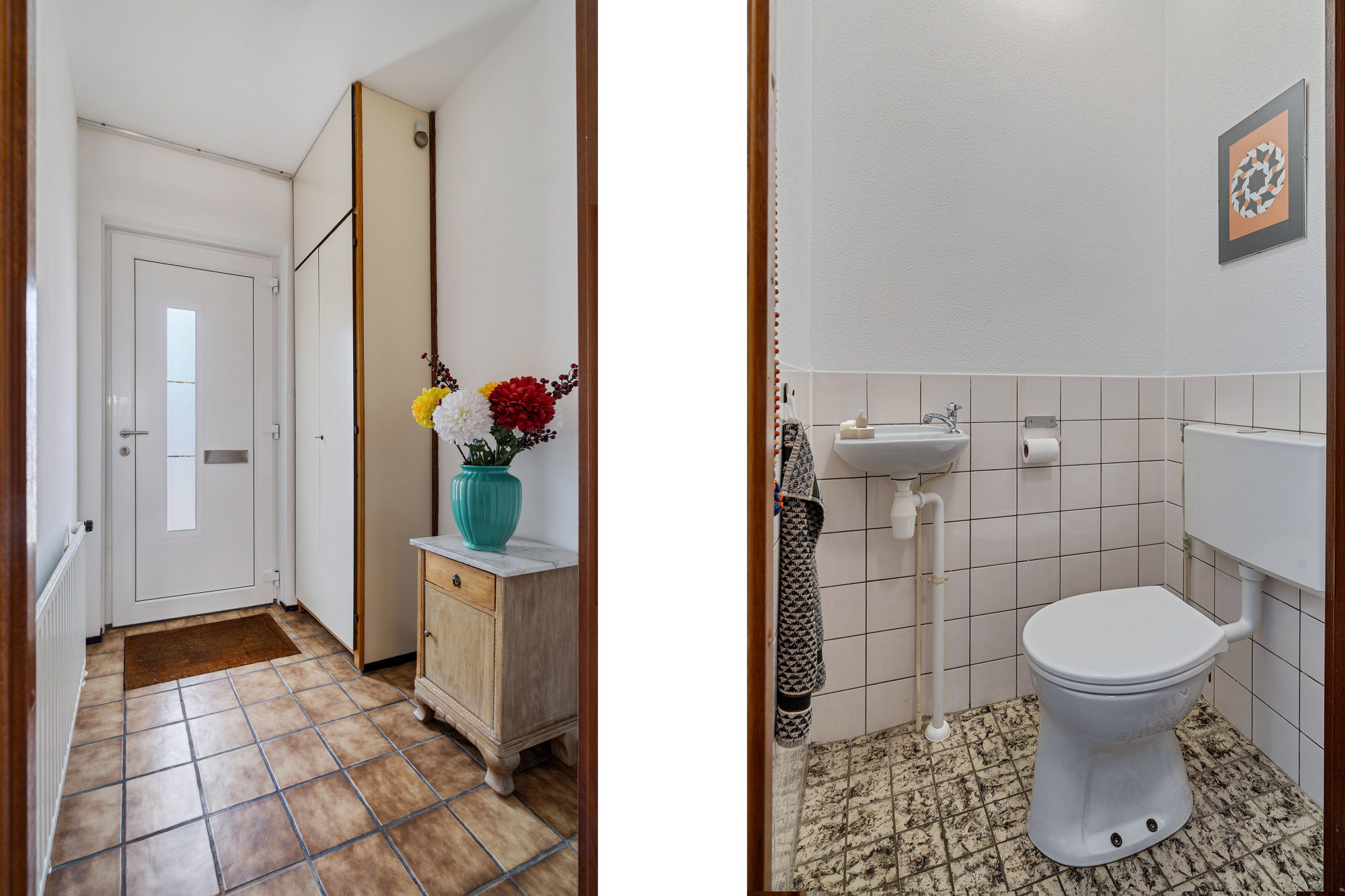 Via een kleine tussenhal bereikt u het toilet met fonteintje en de trap naar de eerste verdieping.