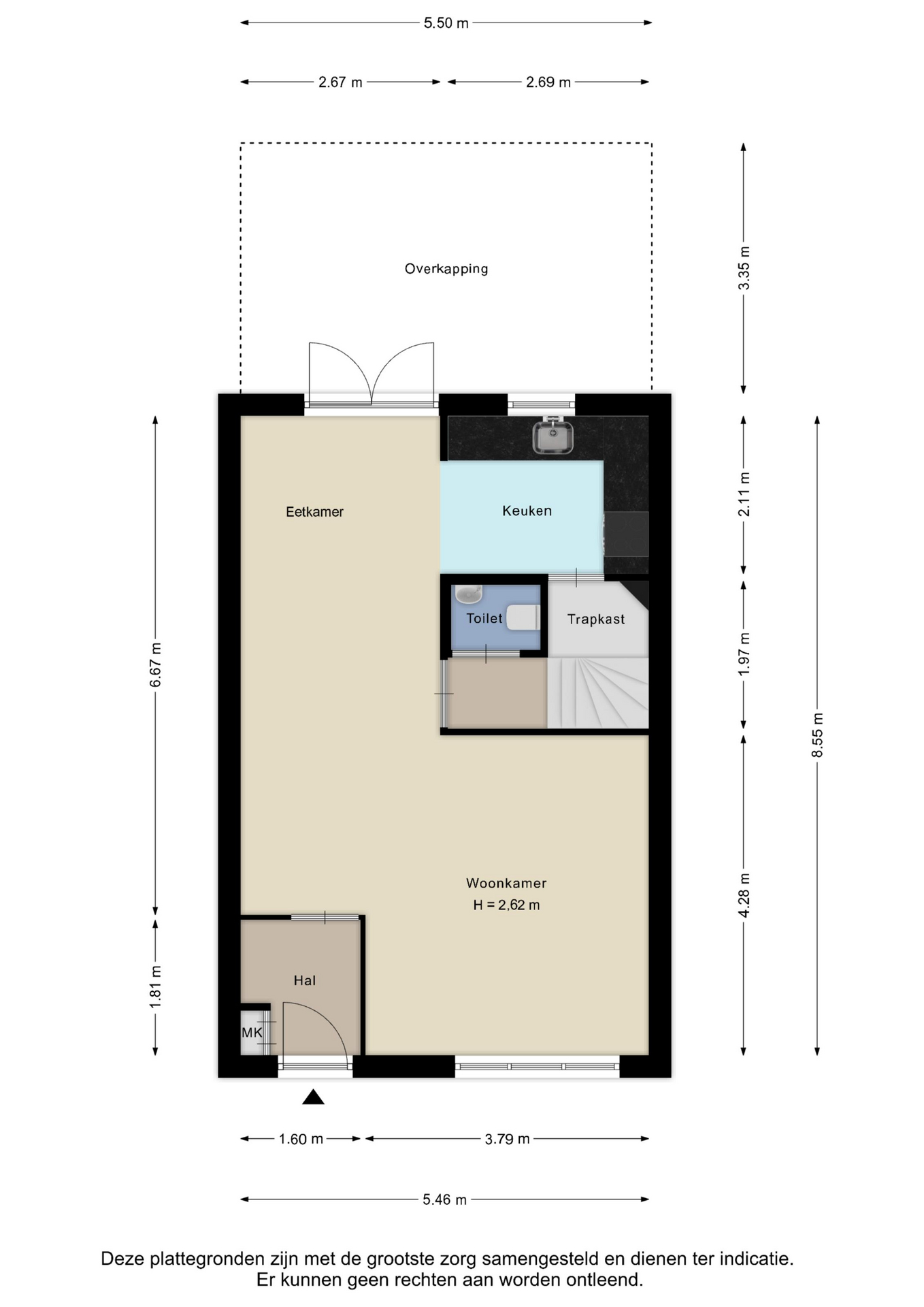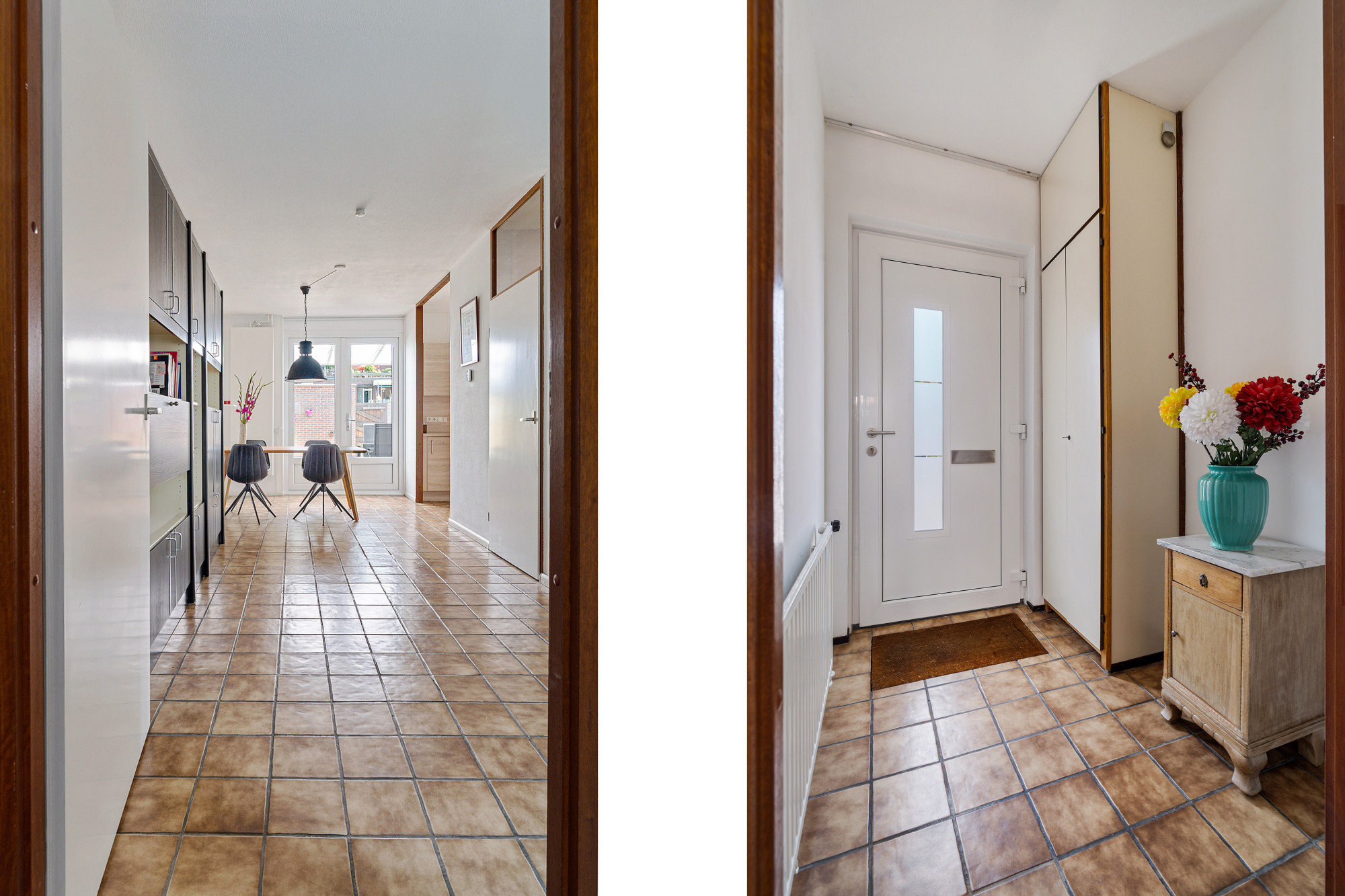 U komt de woning binnen via de hal, met toegang tot de meterkast en de woonkamer.