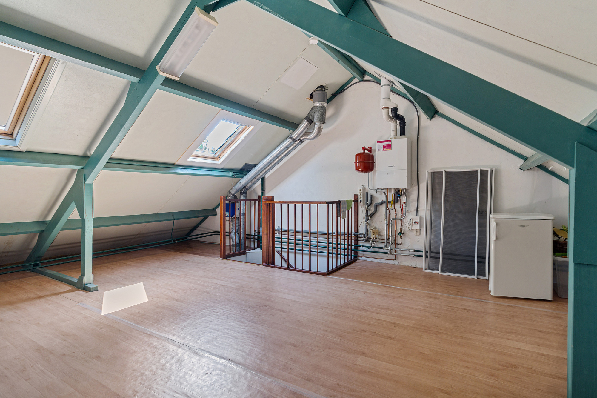 De zolder is hoog en ruim, met twee dakramen die zorgen voor veel lichtinval. Hier bevindt zich de CV-ketel (ATAG, bj. 2018) en is de ruimte geschikt voor een vierde slaapkamer, extra werkruimte of opslag.