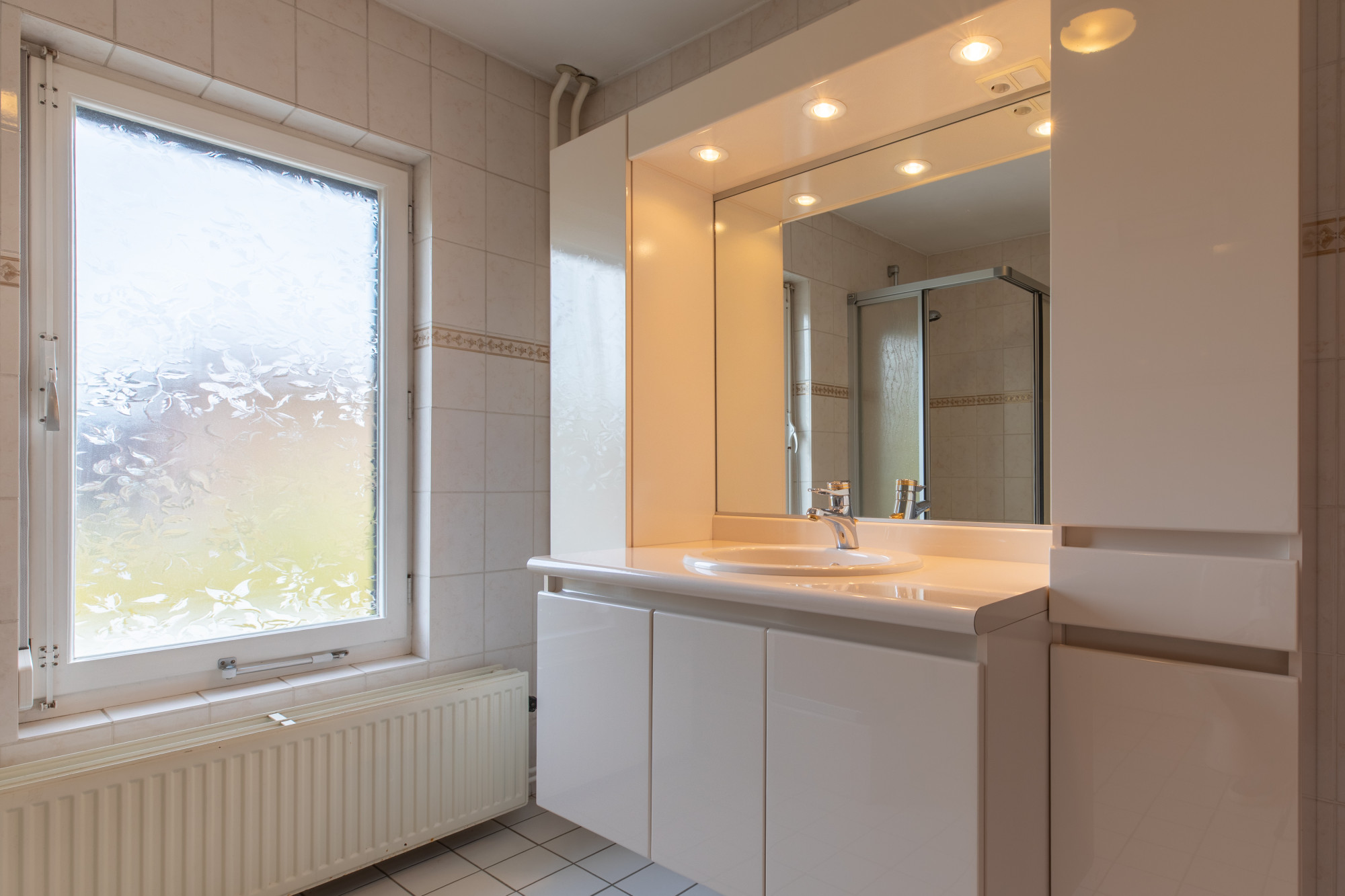 - Badkamer van ca. 6 m² met douche, 2e toilet en wastafel.