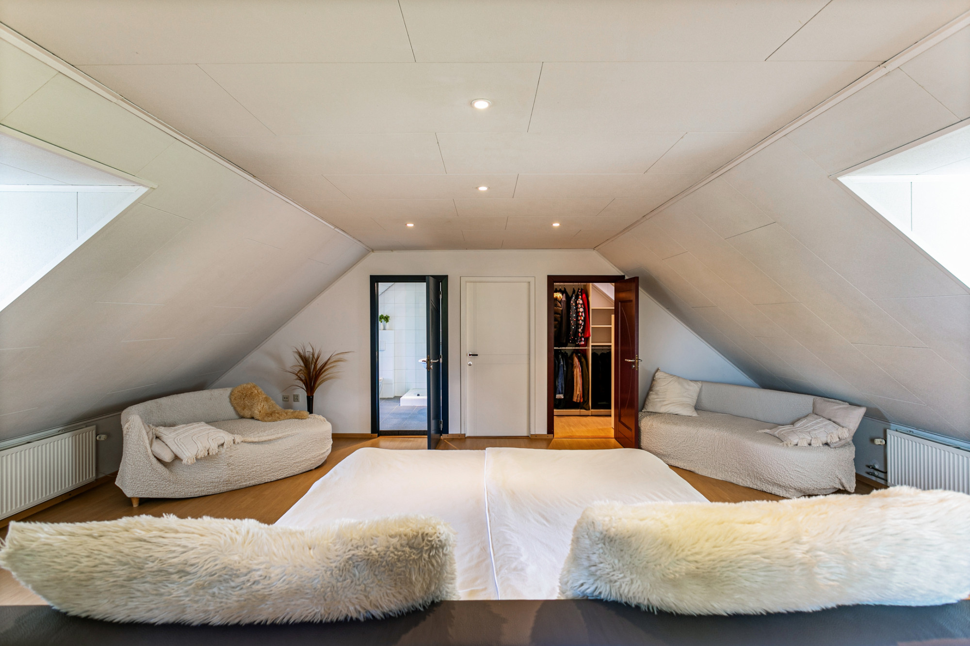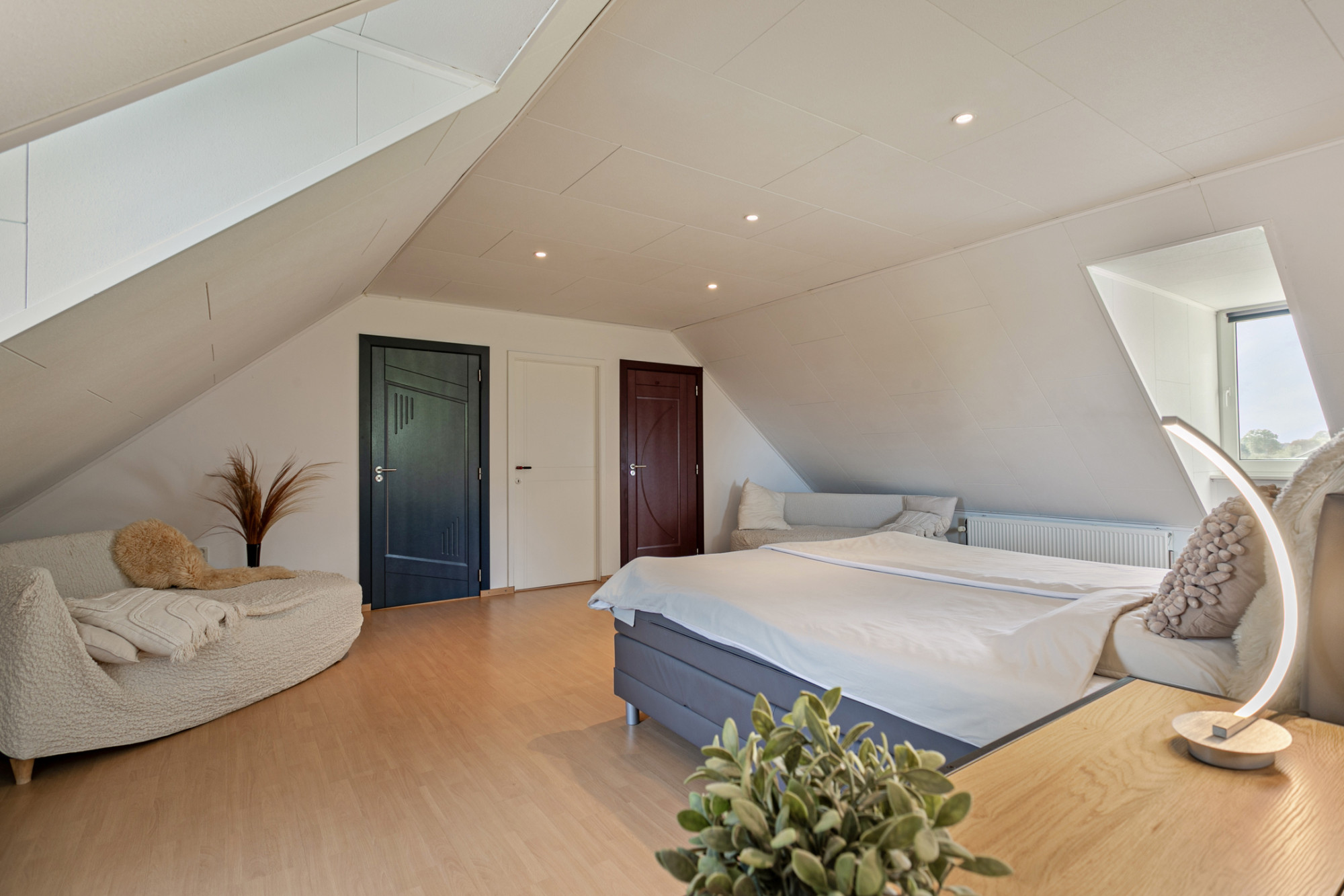Deze zolderverdieping is bereikbaar via de vaste trap. Deze verdieping is ingericht als een luxe oudersuite. Deze bestaat uit een riante slaapkamer, een eigen badkamer (voorzien van vloerverwarming) met toilet en douche, een inloopkast en een aparte berging. Hier geniet je van volledige privacy en comfort, als ware het een eigen studio.