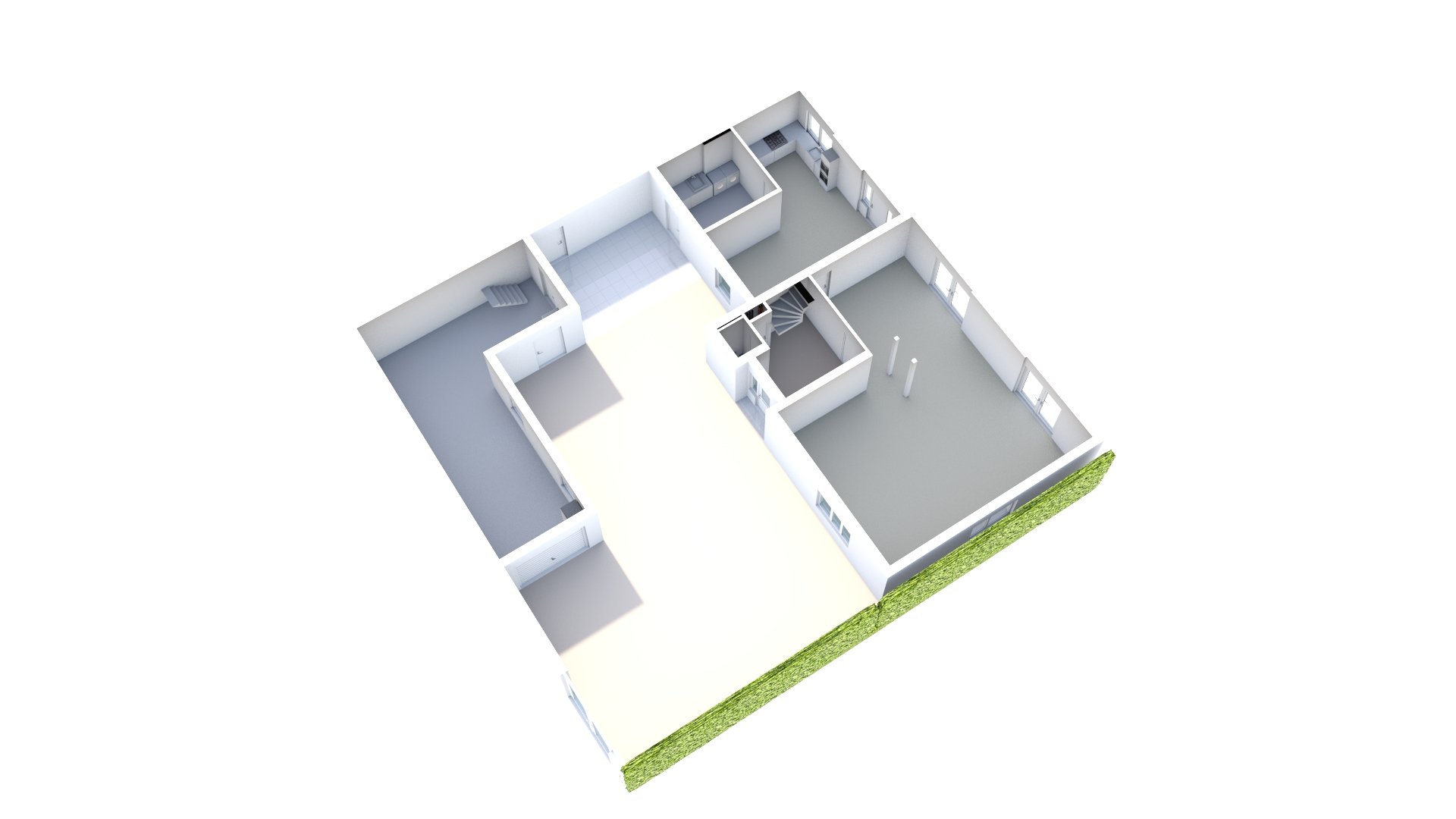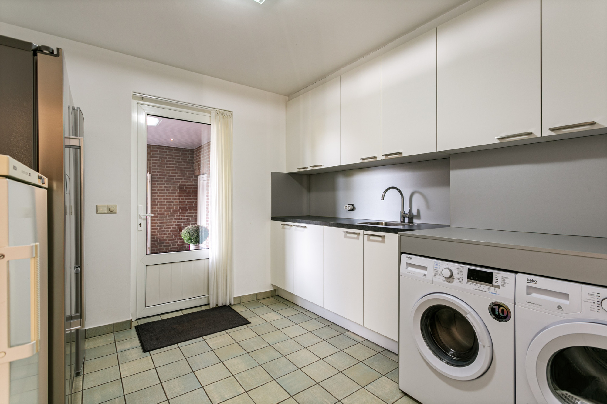 Aansluitend aan de keuken bevindt zich een ruime bijkeuken met keukenblok en witgoedaansluitingen.