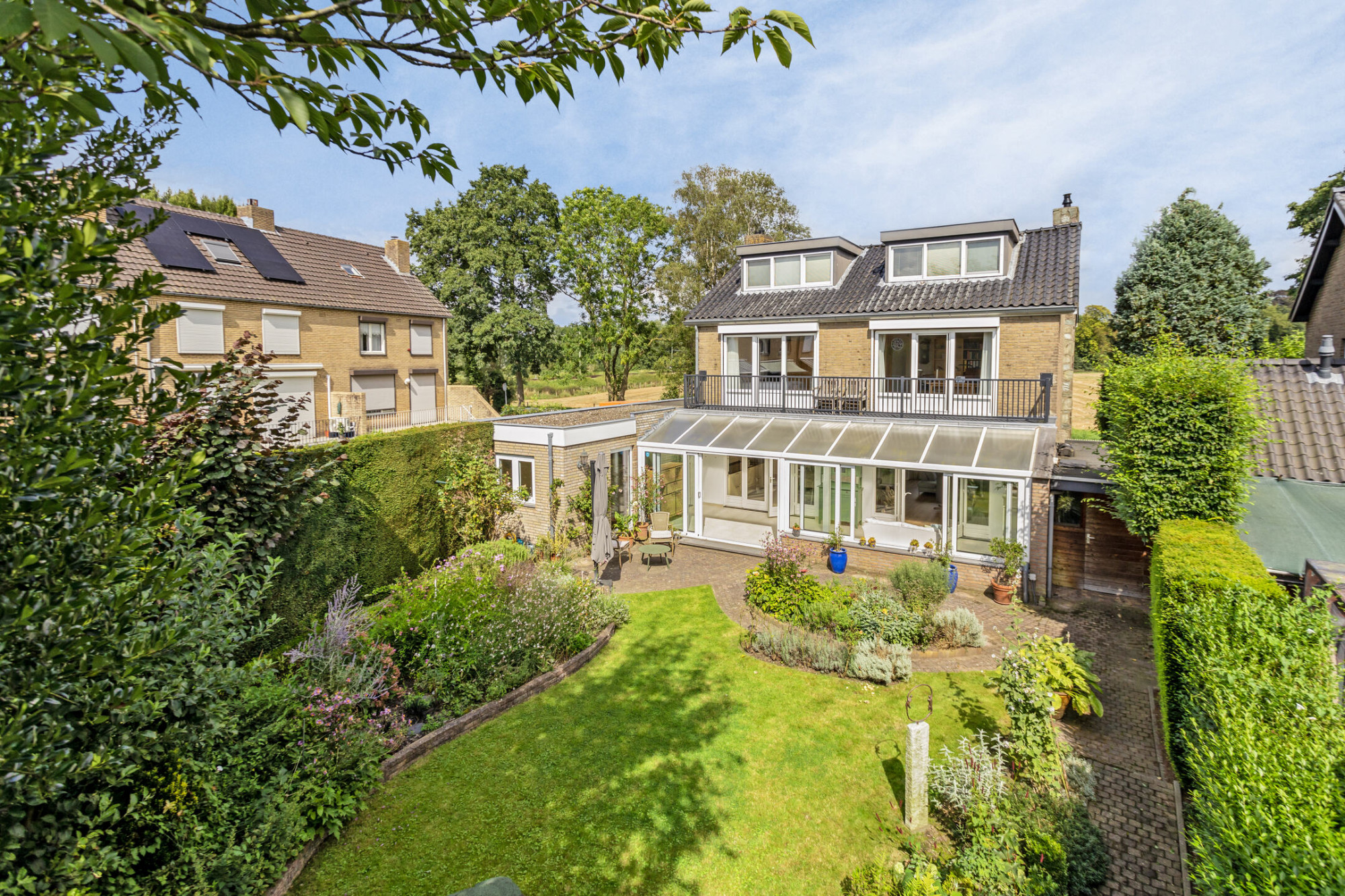 Fraai en landelijk gelegen verrassend grote, vrijstaande woning met 5 slaapkamers, study, riante tuinkamer en een ongekend vrij uitzicht. Aan de achterzijde ligt een grote volledig omsloten tuin met optimale privacy.