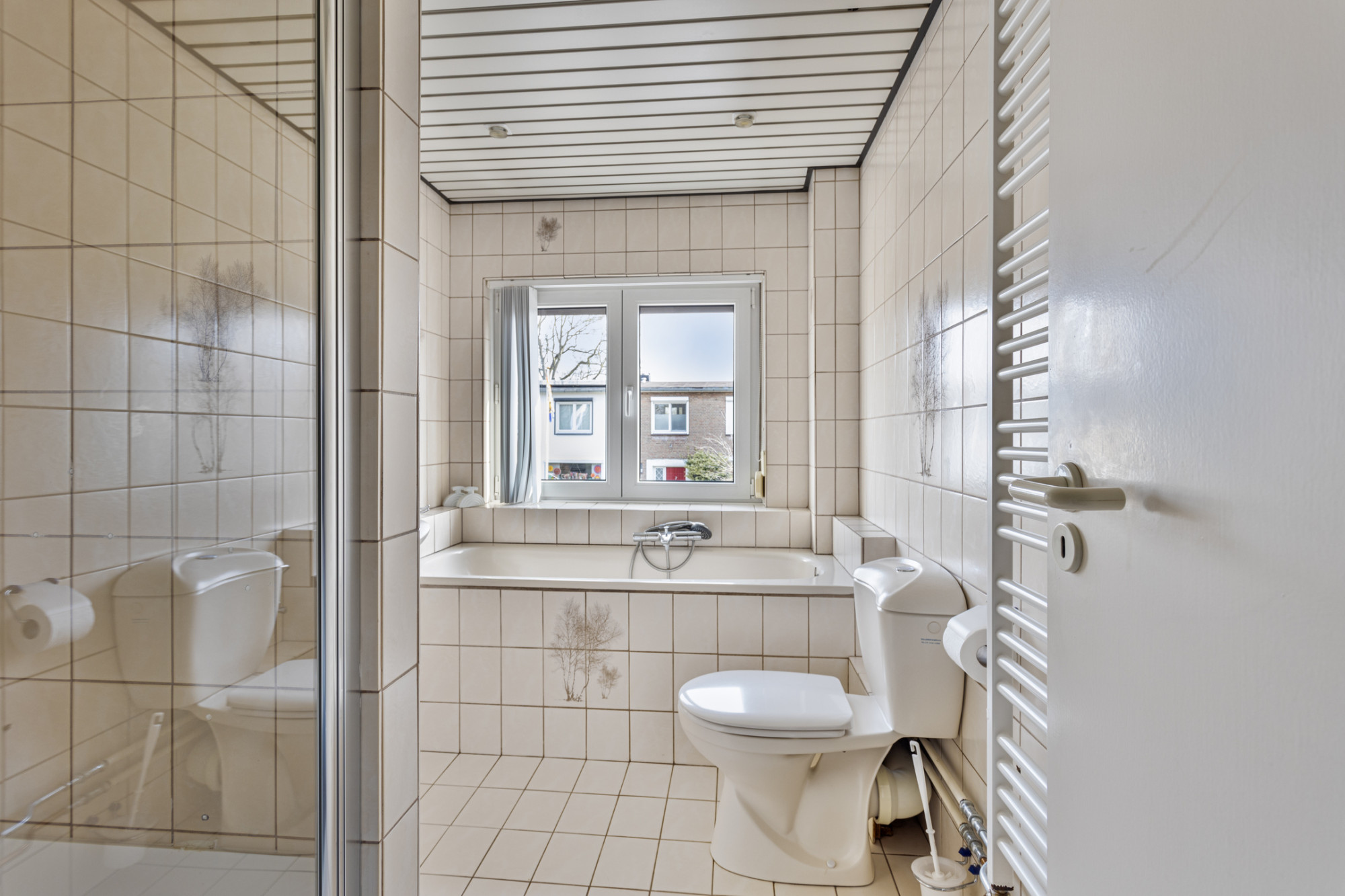 - Betegelde badkamer met ligbad, douche, wastafel en 2e toilet.