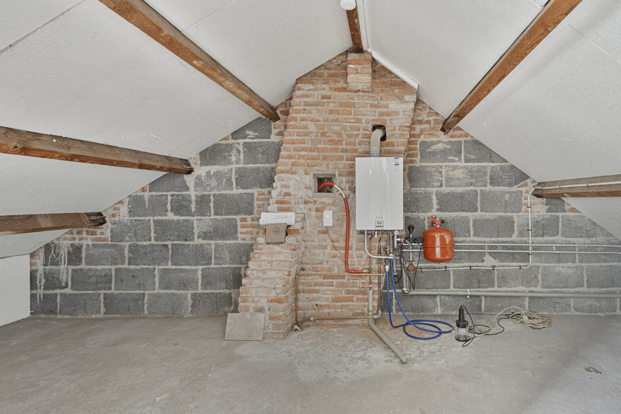 - Via vlizotrap bereikbare zolder van ca. 22 m² met dakkapel en opstelplaats van de HR combi installatie (eigendom). Deze ruimte kan aangepast worden tot extra slaapkamer.
