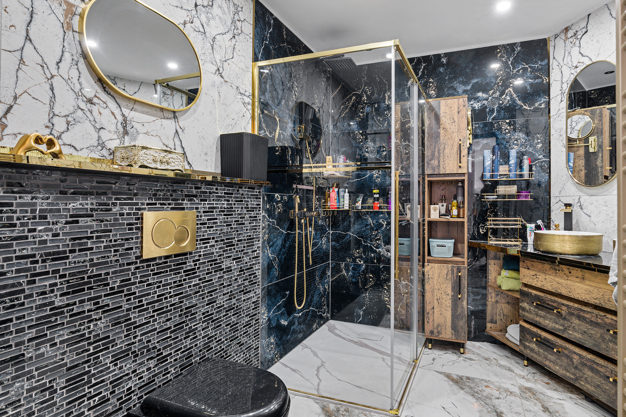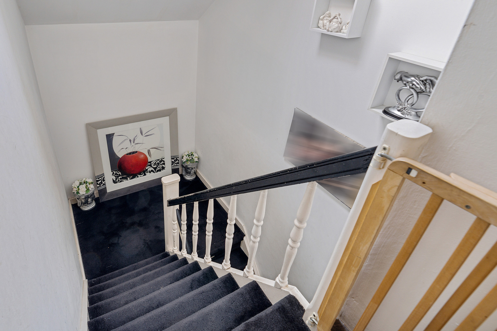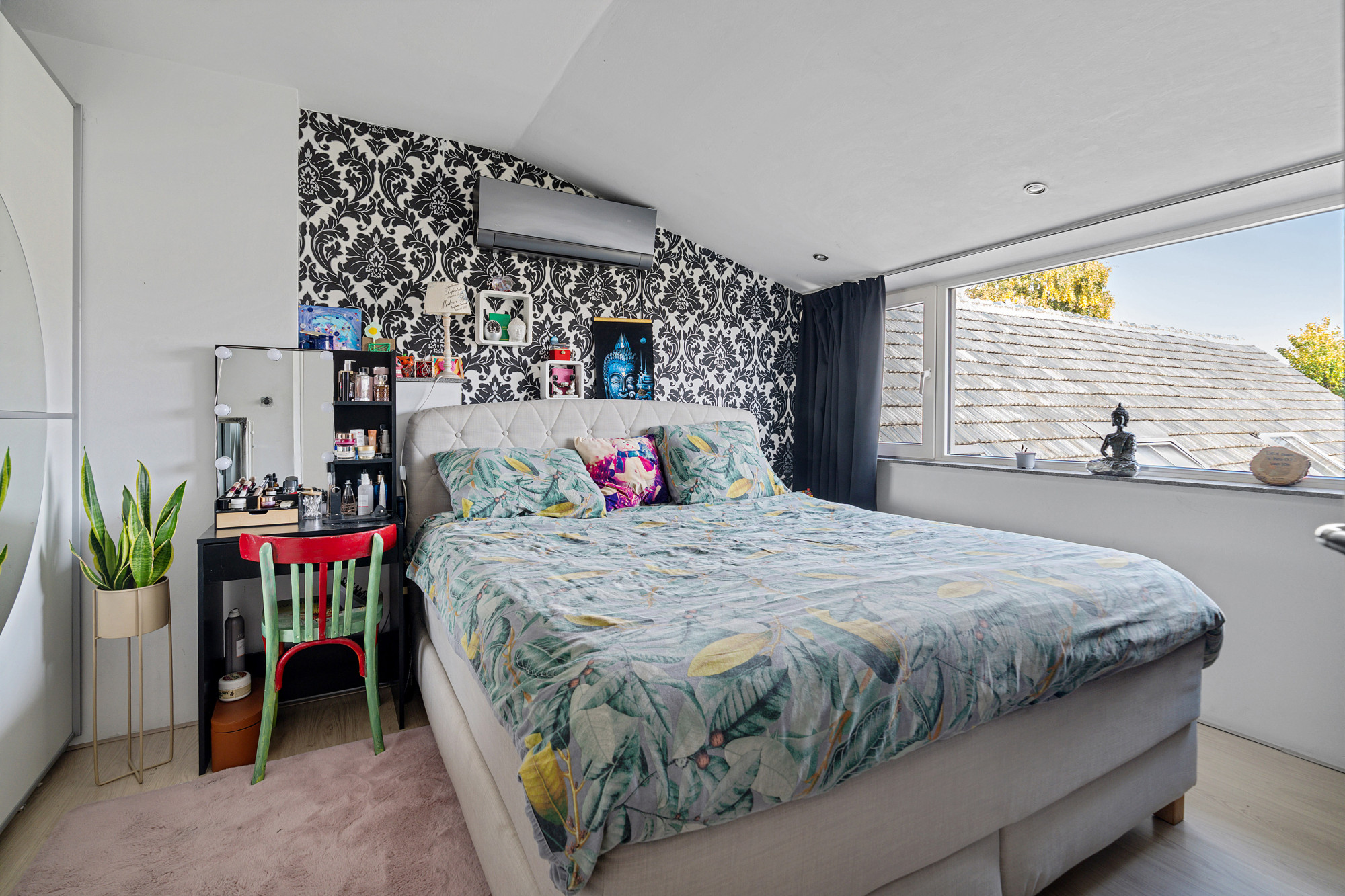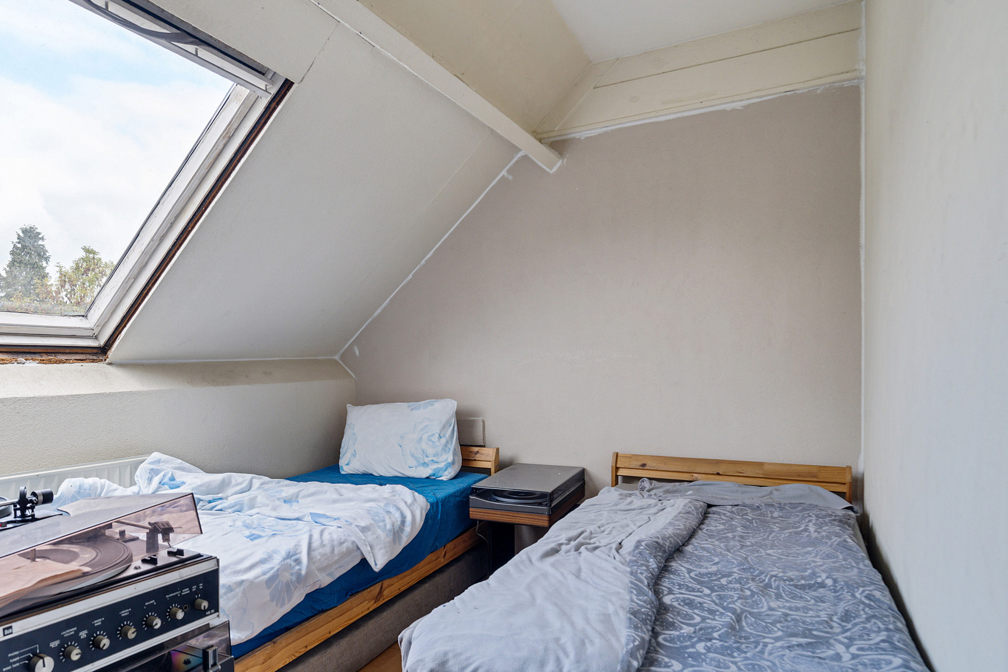Middels vaste trap te bereiken zolderverdieping met 5 slaapkamers, moderne badkamer voorzien van inloopdouche, dubbele vaste wastafel, designradiator en toilet. Twee bergruimtes, alwaar standplaats c.v.-installatie HR (huur).