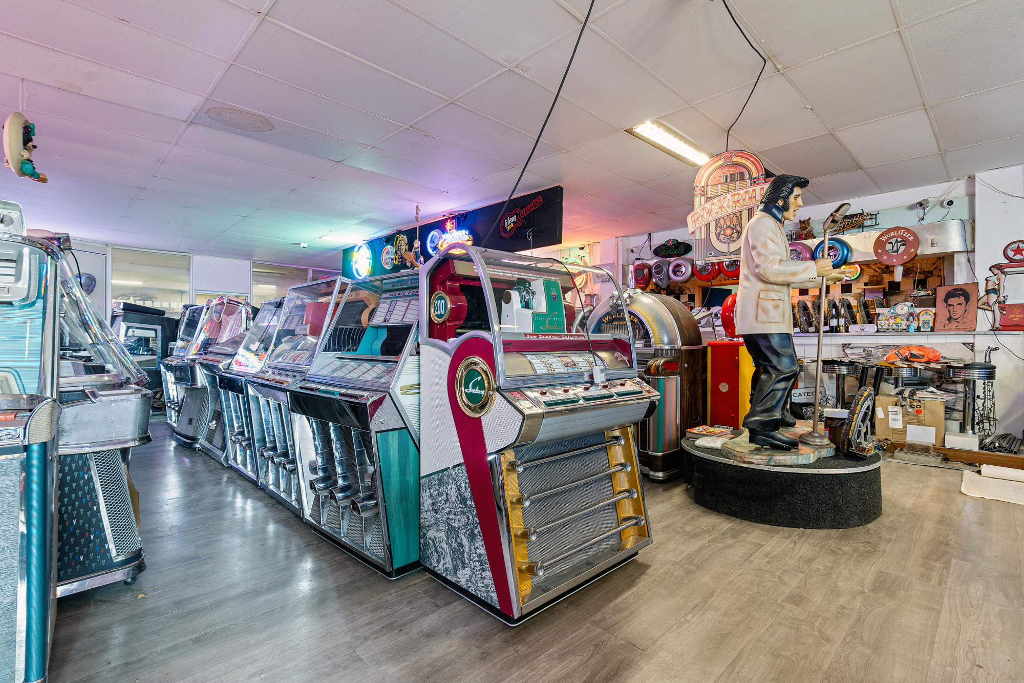 Showroom (ca. 155m2 VVO) met laminaatvloer, magazijn, twee toiletruimtes en wasruimte.