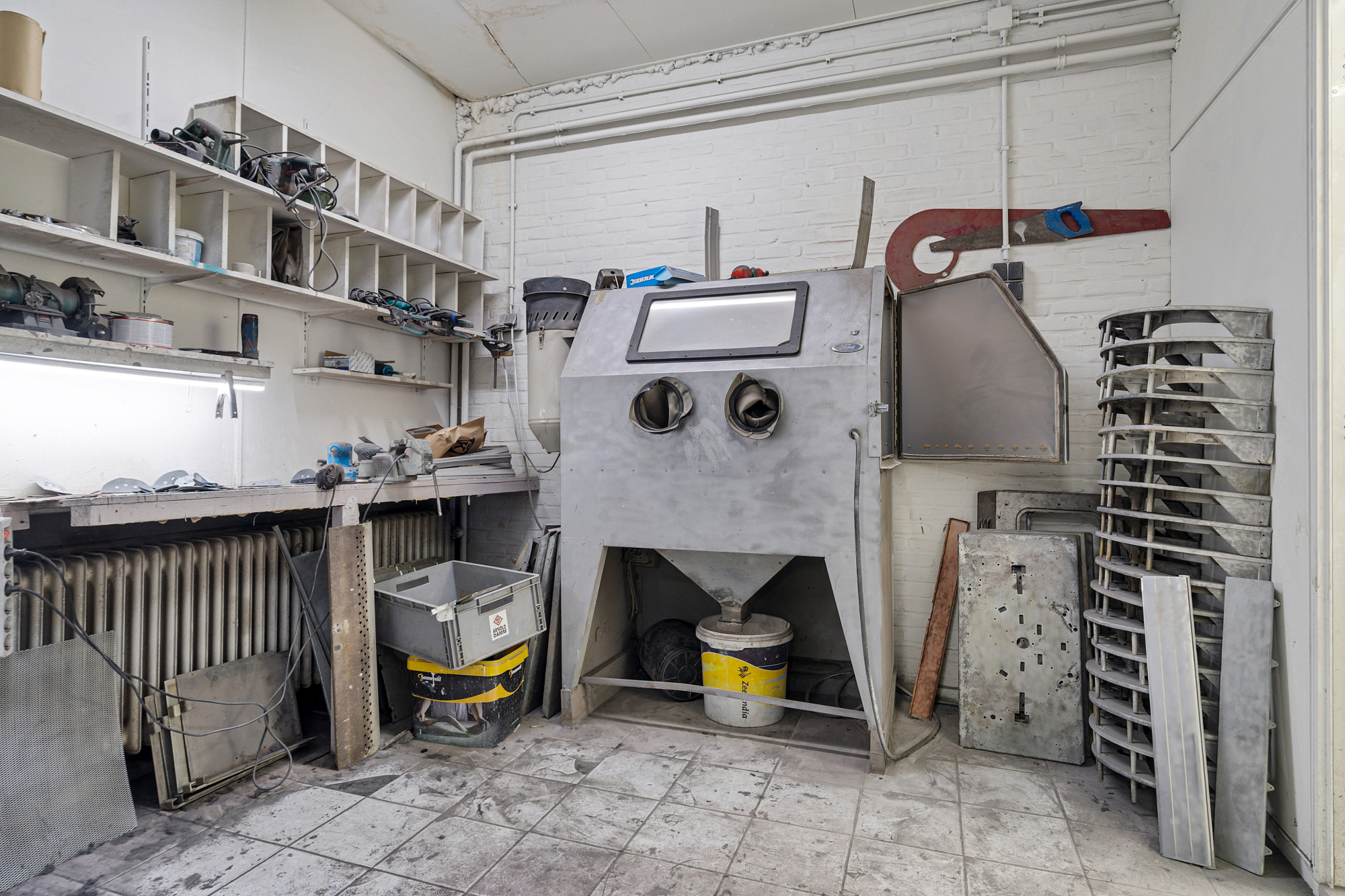 Diverse kantoorruimtes, magazijnen en werkplaats met separate straal- en spuitcabine.