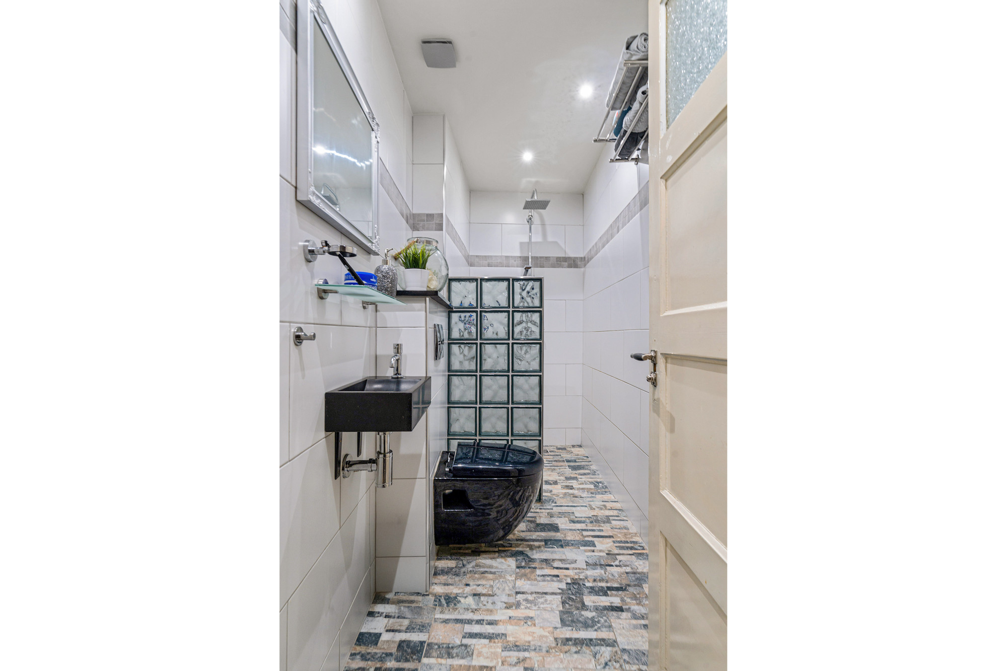 vriezer en vaatwasser. Hal met toegang tot twee slaapkamers en badkamer met inloopdouche, toilet en vaste wastafel.