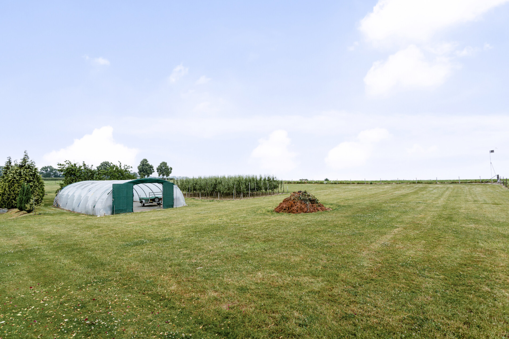 Centraal op het perceel gelegen is de royale loods (voormalige fruitkwekerij) van ca. 400 m2, momenteel in gebruik als opslag. Hier zijn tevens sanitair voorzieningen en krachtstroom aanwezig.