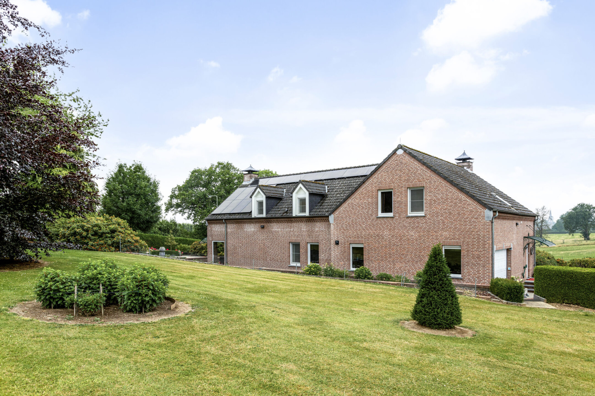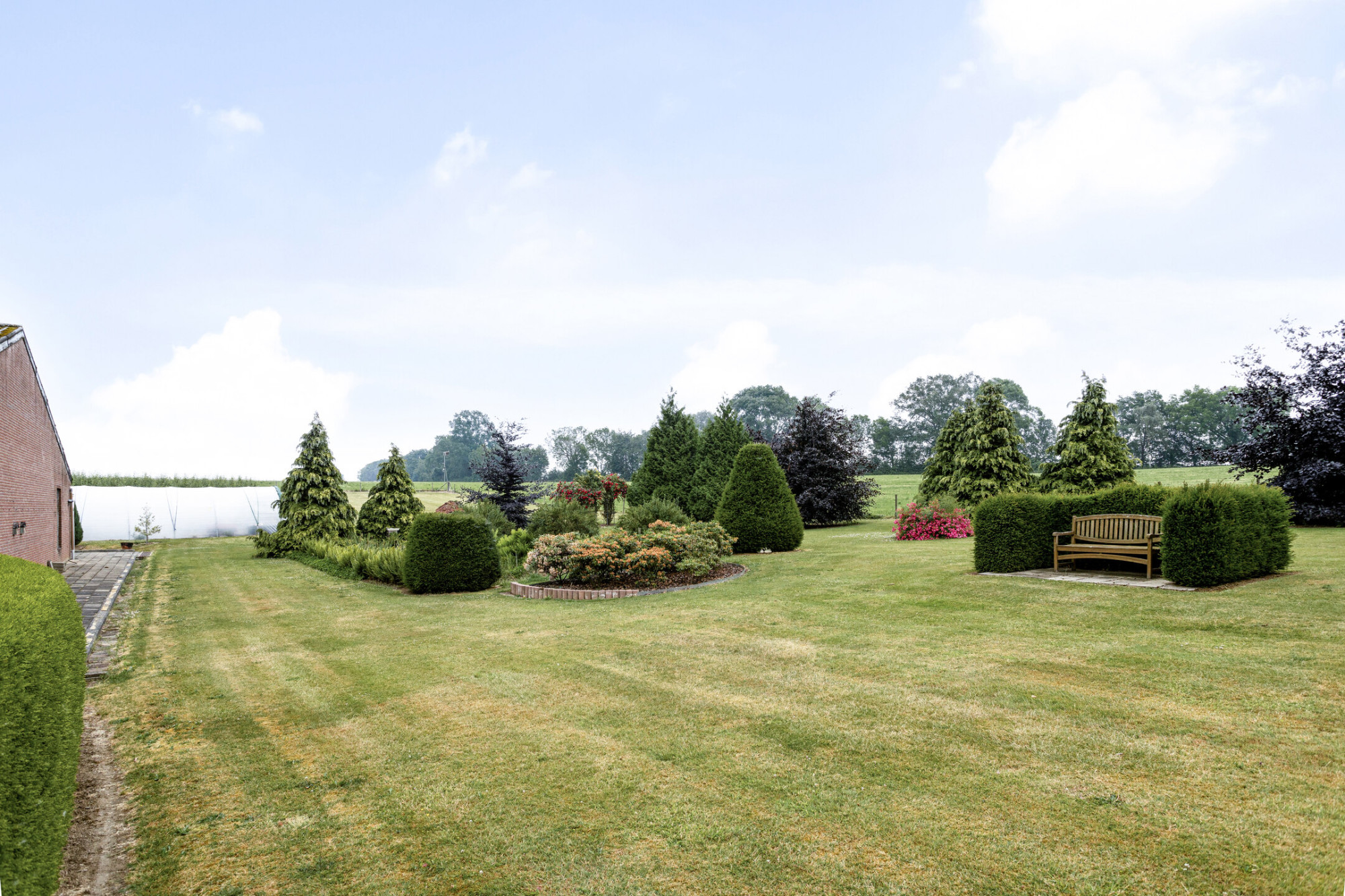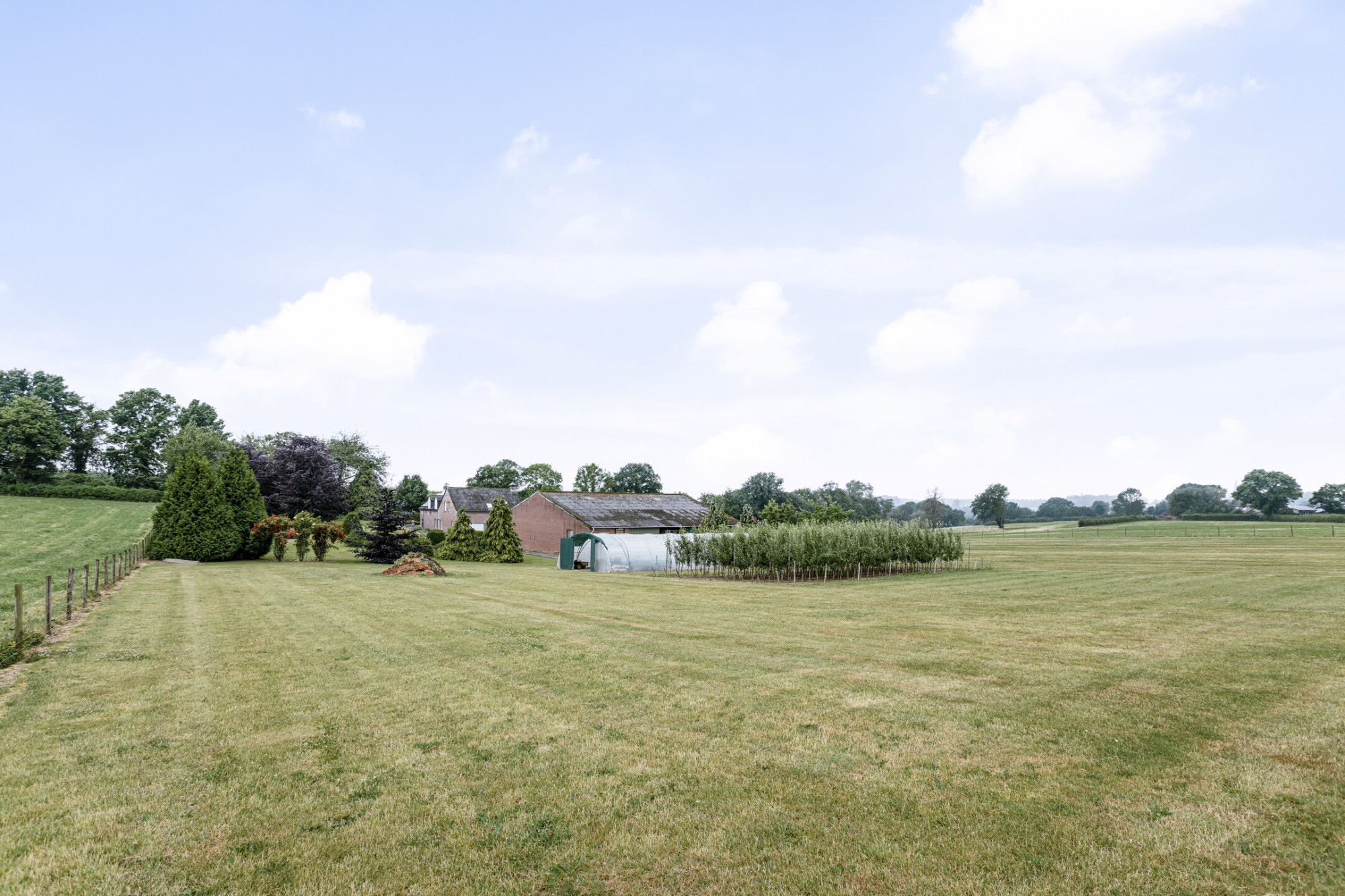 Aan de rechterzijde van het perceel bevindt zich de parkachtige tuin, waarbij er diverse, prachtige plekken zijn om te onthaasten, met natuurlijk een prachtig uitzicht over de velden en het heuvelland.
