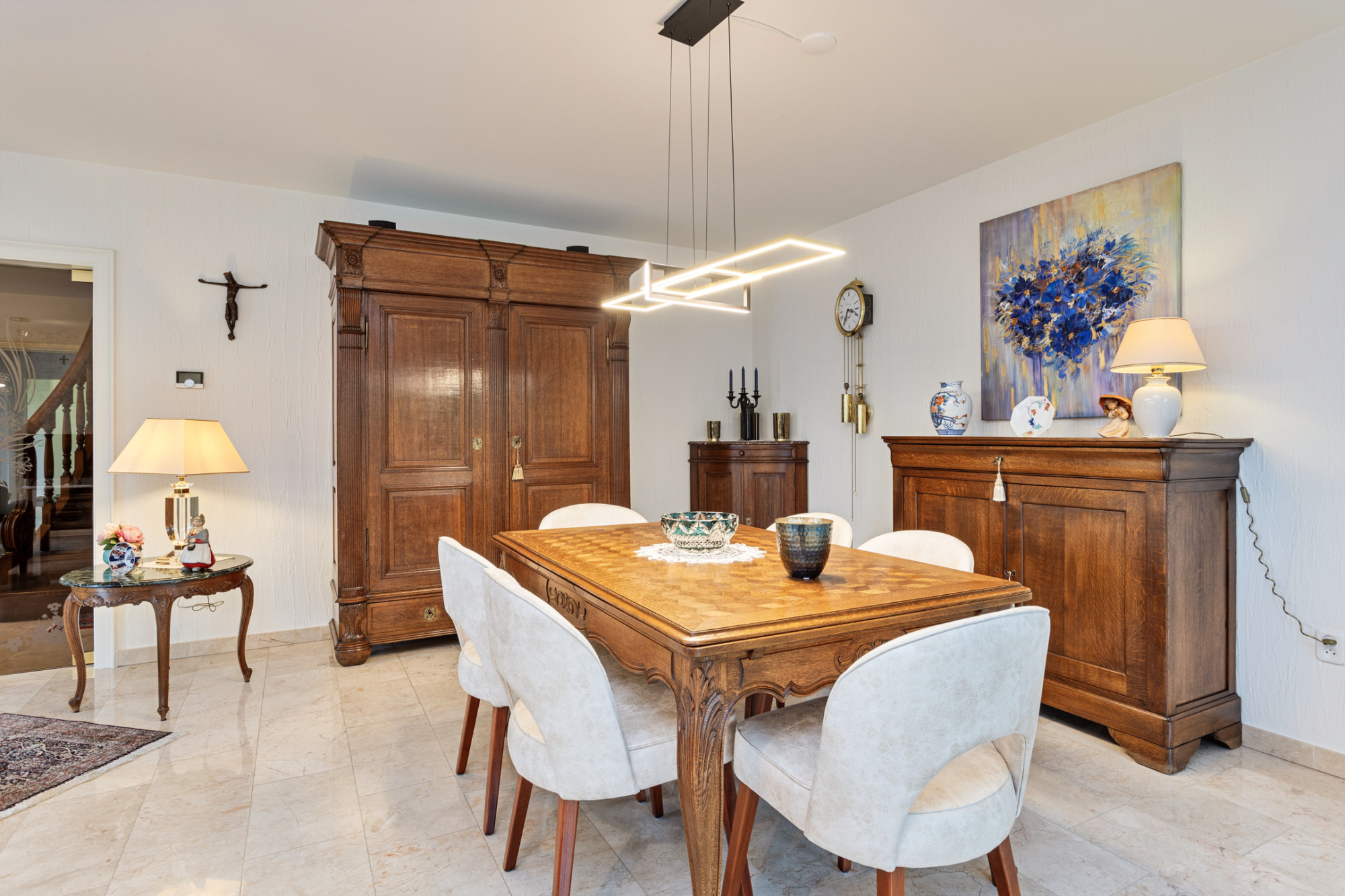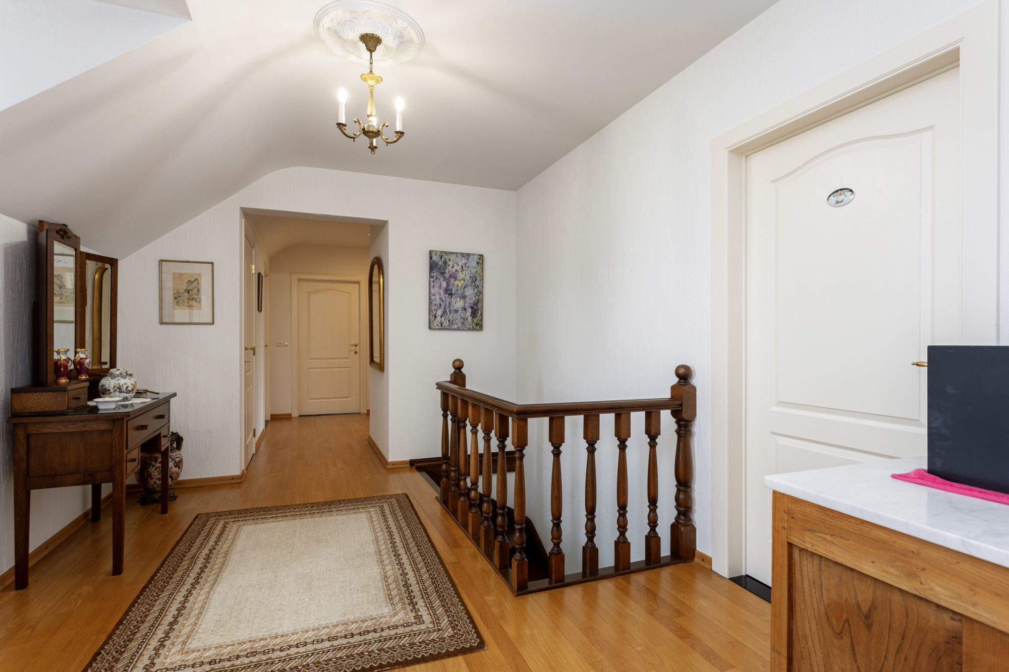 Uitkomend op de overloop heeft u toegang tot 4 slaapkamers, separaat toilet en badkamer.