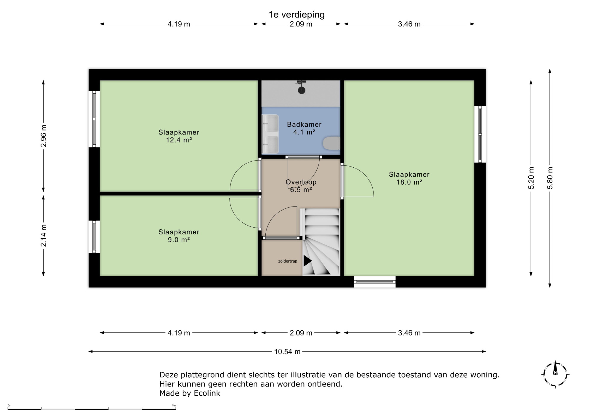 Overloop met toegang tot drie slaapkamers, respectievelijk groot: