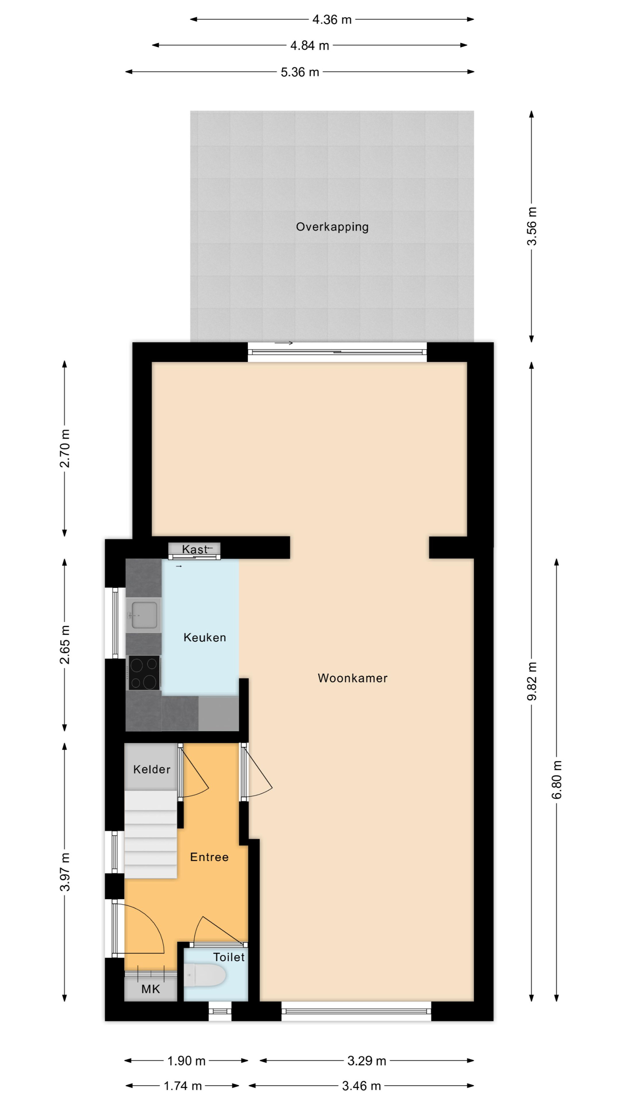 De begane grond is voorzien van warme houten plankenvloeren die doorlopen in de woonkamer, de entree en de halfopen keuken. De keuken is praktisch ingedeeld en sluit naadloos aan op de leefruimte. Aan de achterzijde is de woning uitgebouwd en voorzien van een schuifpui naar een overdekt terras: een ideale plek om tot rust te komen of gasten te ontvangen.